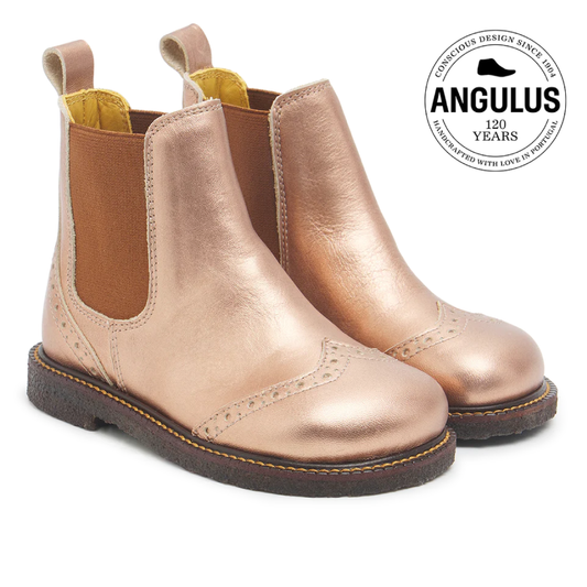 Chelsea Støvle Med Brogue Hulmønster, Bronze Metallic/Cognac
