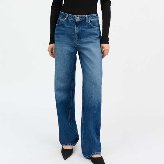 Carlo Midwaist Wide Jeans, Mid Blue