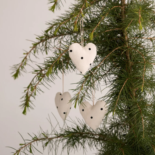 Dotted Hearts, Ecru/Black Dots (3 Pcs)