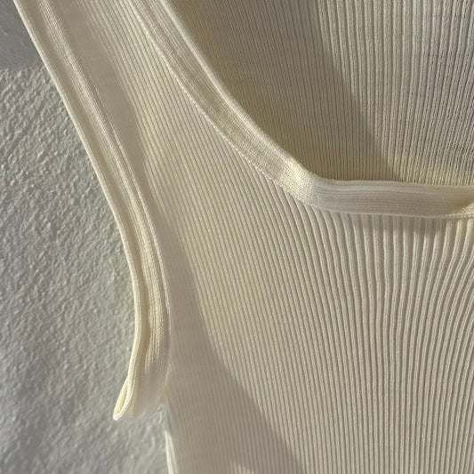 Uld & Silke Tank Rib Top M. Blonder, Ivory 3410