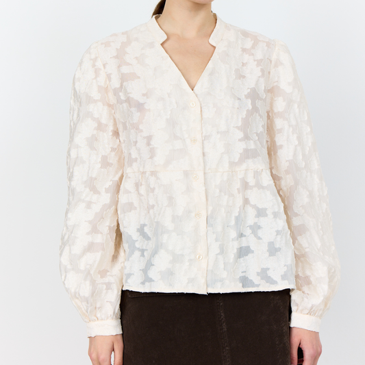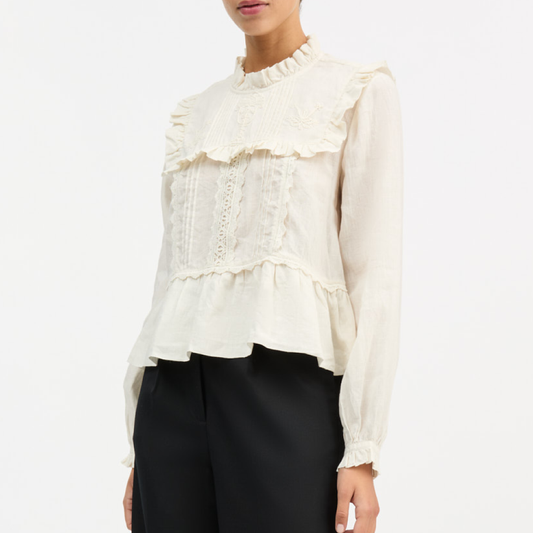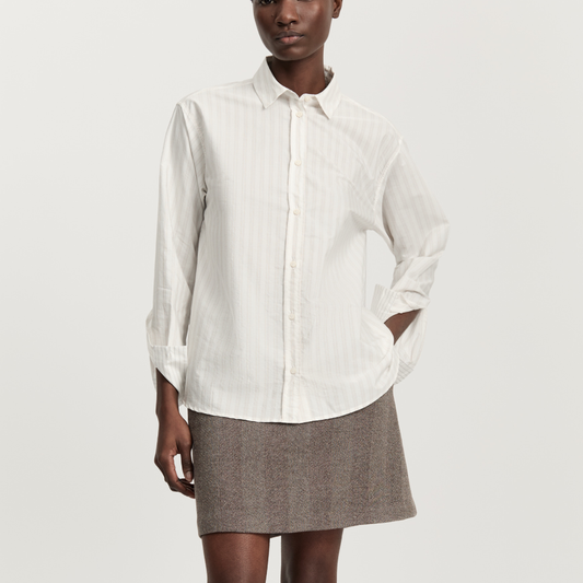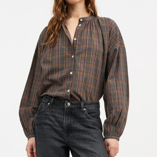 Lucca Cotton Langærmet Bluse, Coffee Quartz Stripe