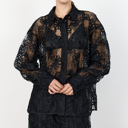 Lucca Cotton Langærmet Bluse, Dark Navy Stripe