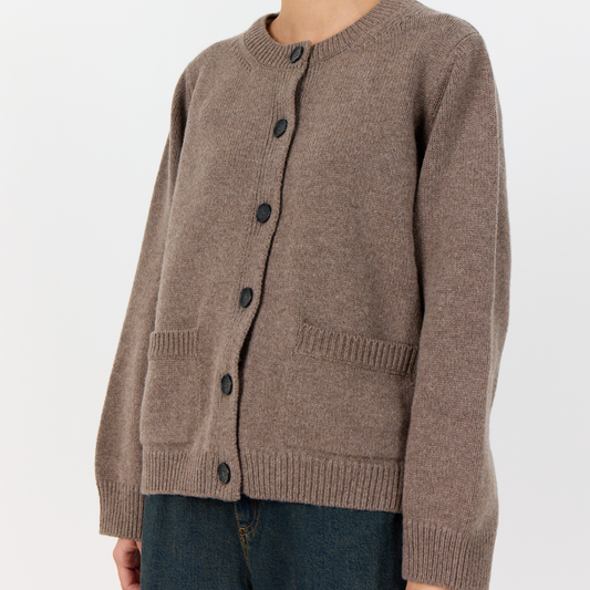 Premium Cashmere Ribbed Cardigan, Dark Brown
