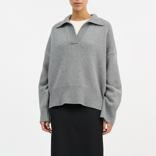 Dean V-Neck Jumper, Grey Melange