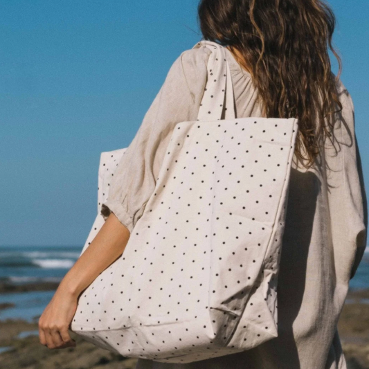 Big Dot Bag, Ecru/Black Dots