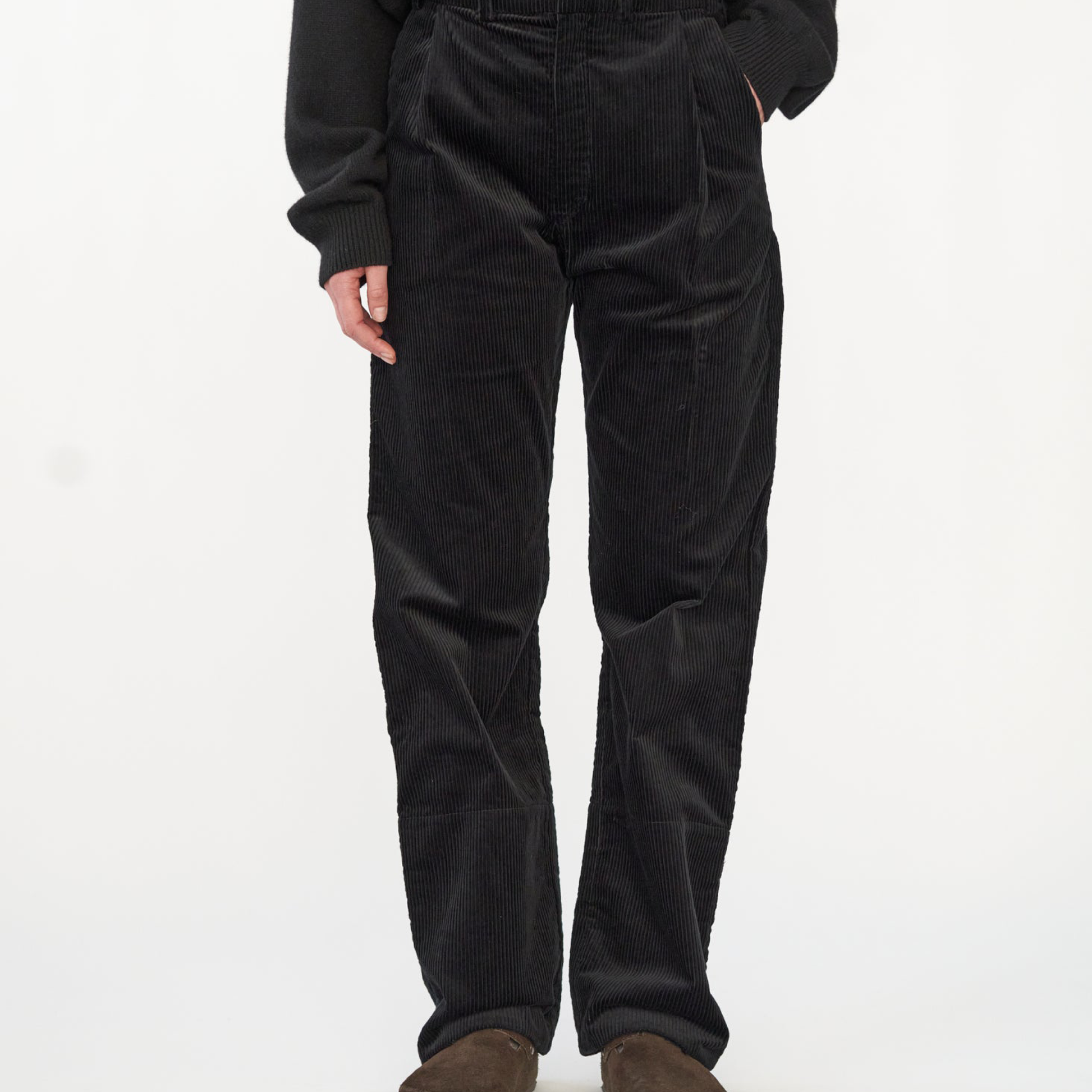 Corduroy Box Trousers, Black