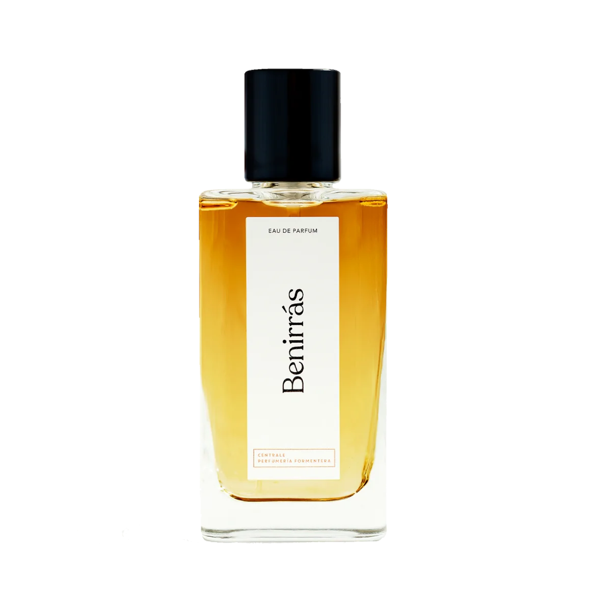 Benirrás Eau de Parfum fra Centrale Perfumería Formentera. Denne parfume indeholder duftnoter af rose, jasmin, rosentræ, tonka bønne, egemos samt sandeltræ - og fås i to størrelser.