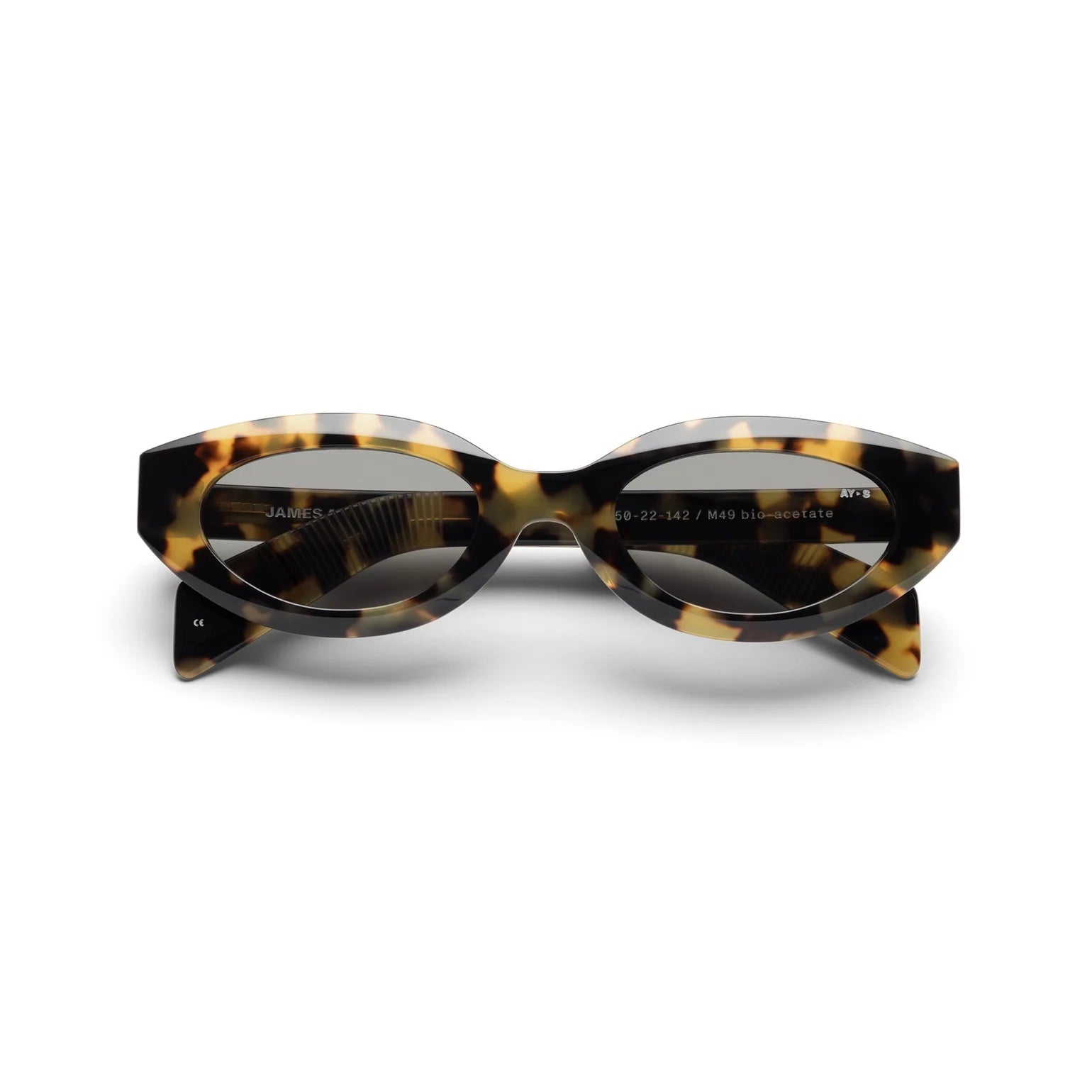 Alle solbriller fra James AY er håndlavet af 100% plantebaseret acetat fra Italien, med hængsler af genbrugte metalspåner. Linserne er Columbia Resin 39 (CR39) med en antirefleksbelægning på indersiden og et specielt UV-filter med god UV-beskyttelse.