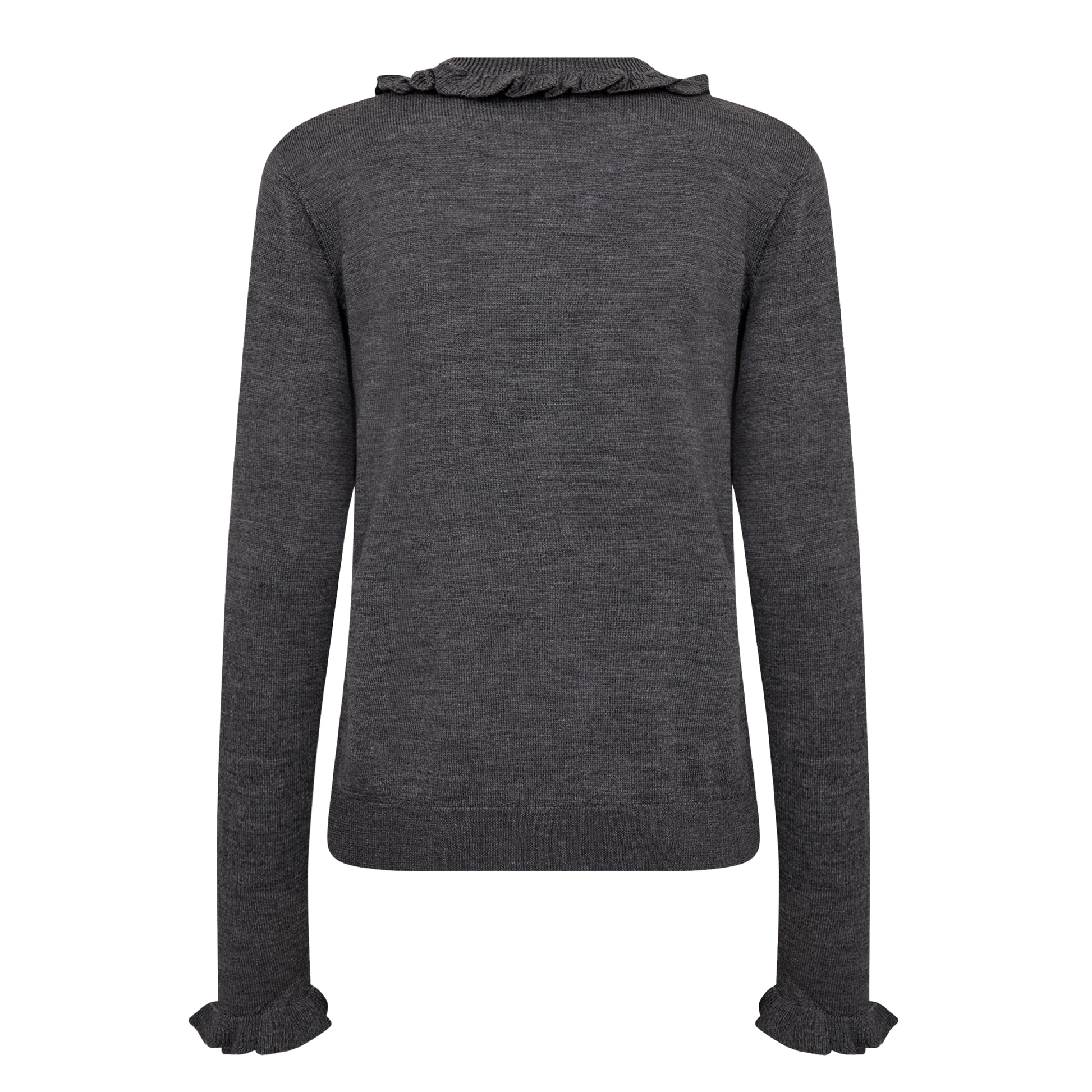 Ismaila 14 fra Levete Room. Den fineste cardigan, fremstillet i en blød merinould. Cardiganen har en charmerende flæsekrave og manchetter samt en knaplukning.