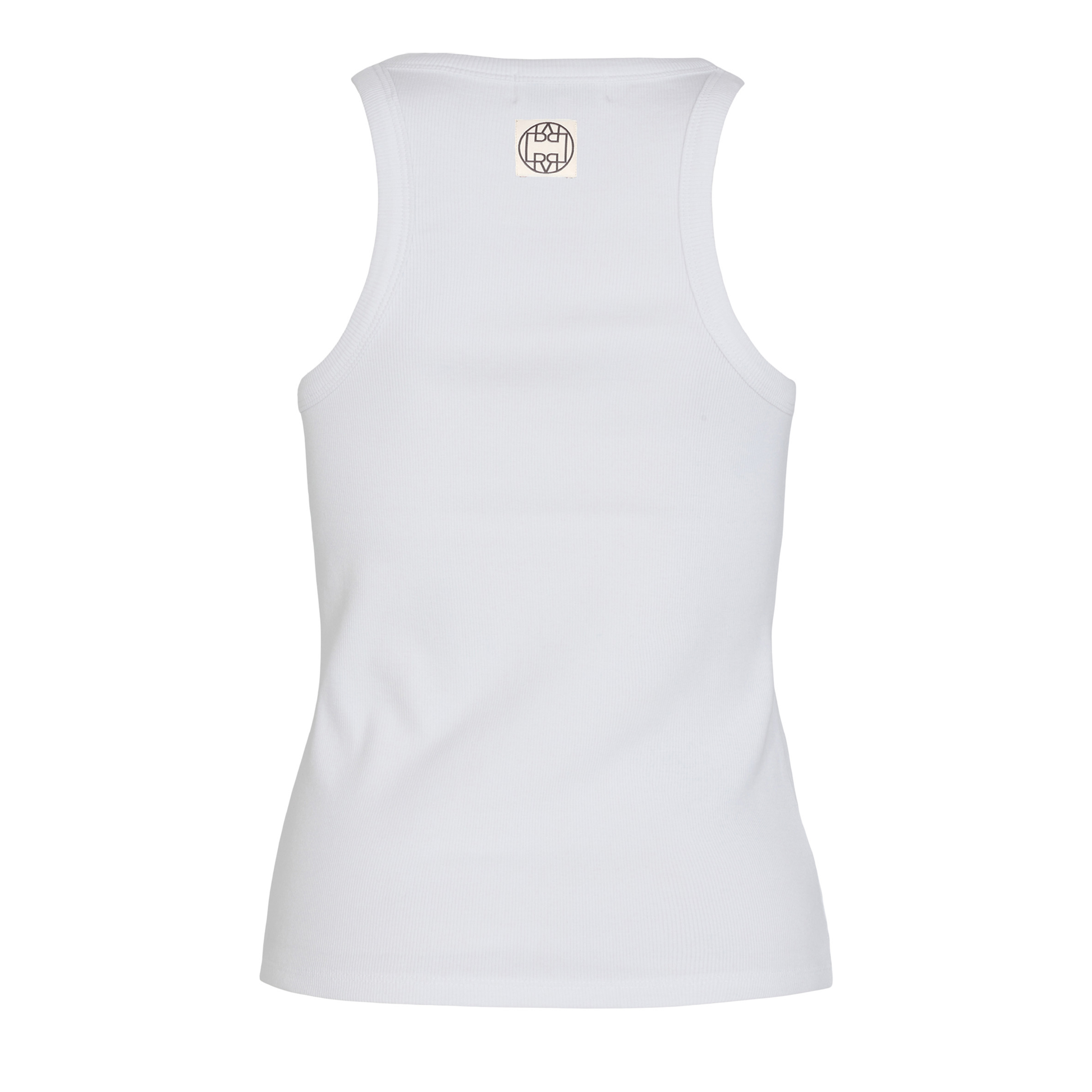 Lovely white basic top in rib from Leveté Room. The top has a round neckline, deep armholes and a logo on the neck. The material has plenty of stretch, so the top adapts to your body.