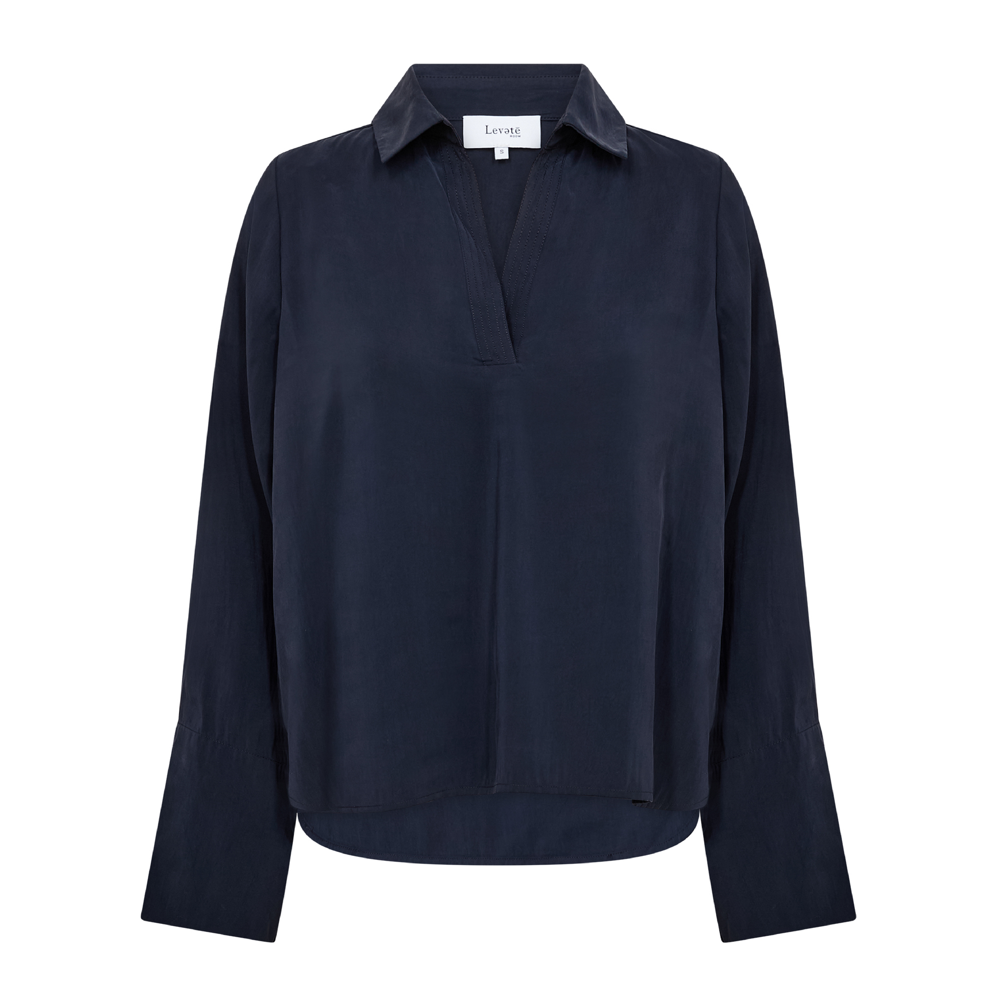 Den smukke Octavia 1 skjorte fra Levete Room. Skjorten har en klassisk V-hals, læg i bunden - som skaber elegante folder, og forlængede manchetter med bindedetaljer for ekstra stil.