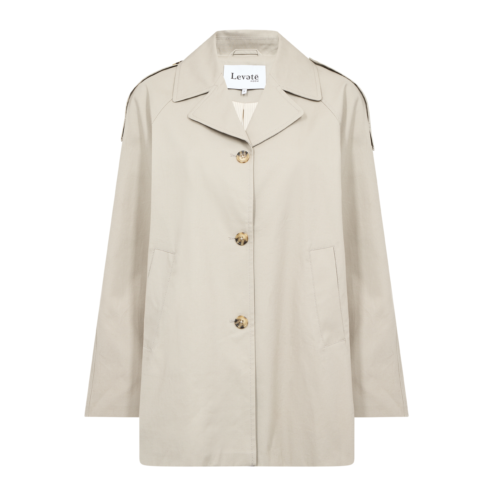 Skøn jakke fra Levete Room i skøn og let kvalitet. Jakken har en klassisk krave, knaplukning og to rummelige lommer foran, hvilket giver en ren og elegant silhuet.