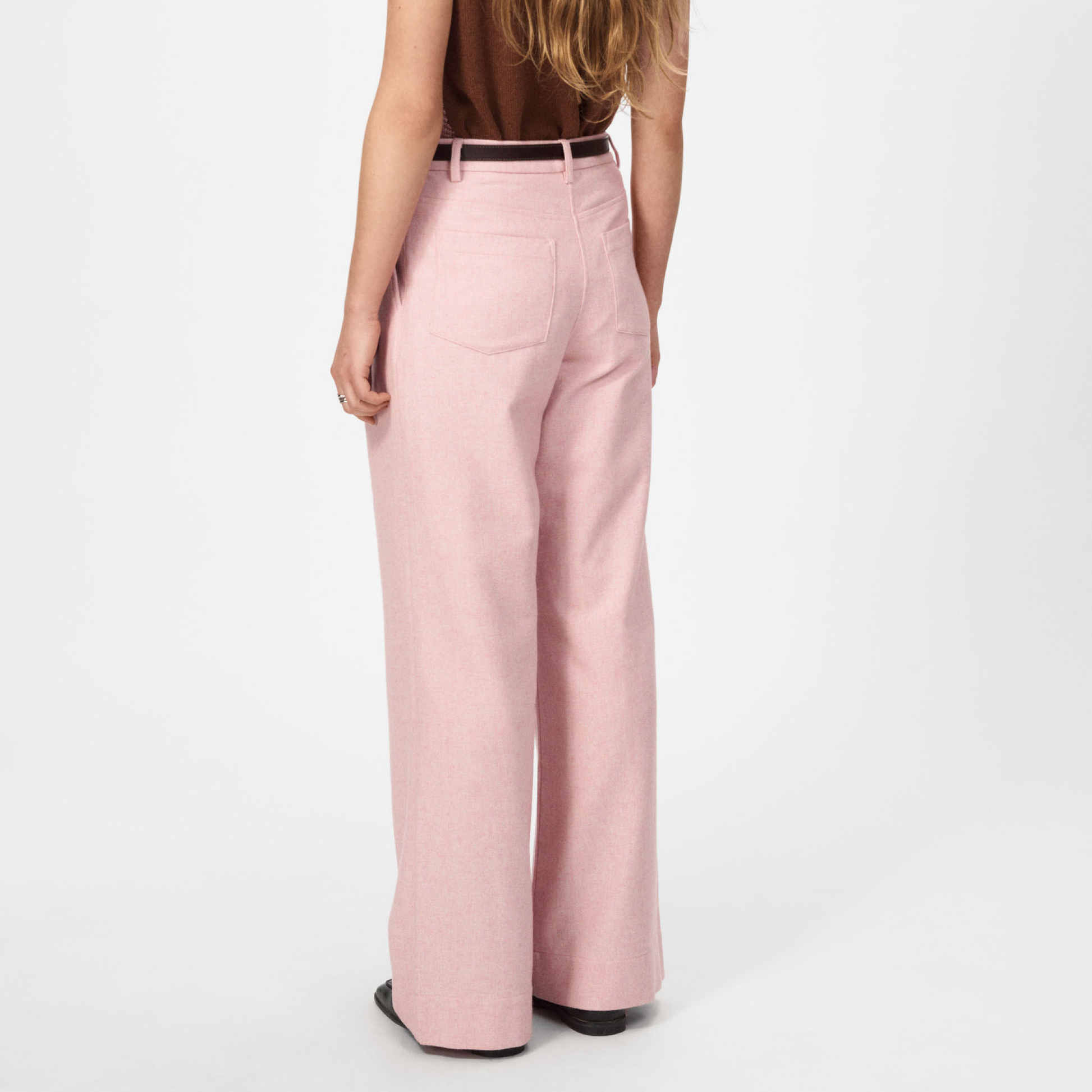 Klassiske mellemhøjde taljede bukser fra Nué Notes. Bukserne har skrålommer foran, samt brede ben og påsyede baglommer