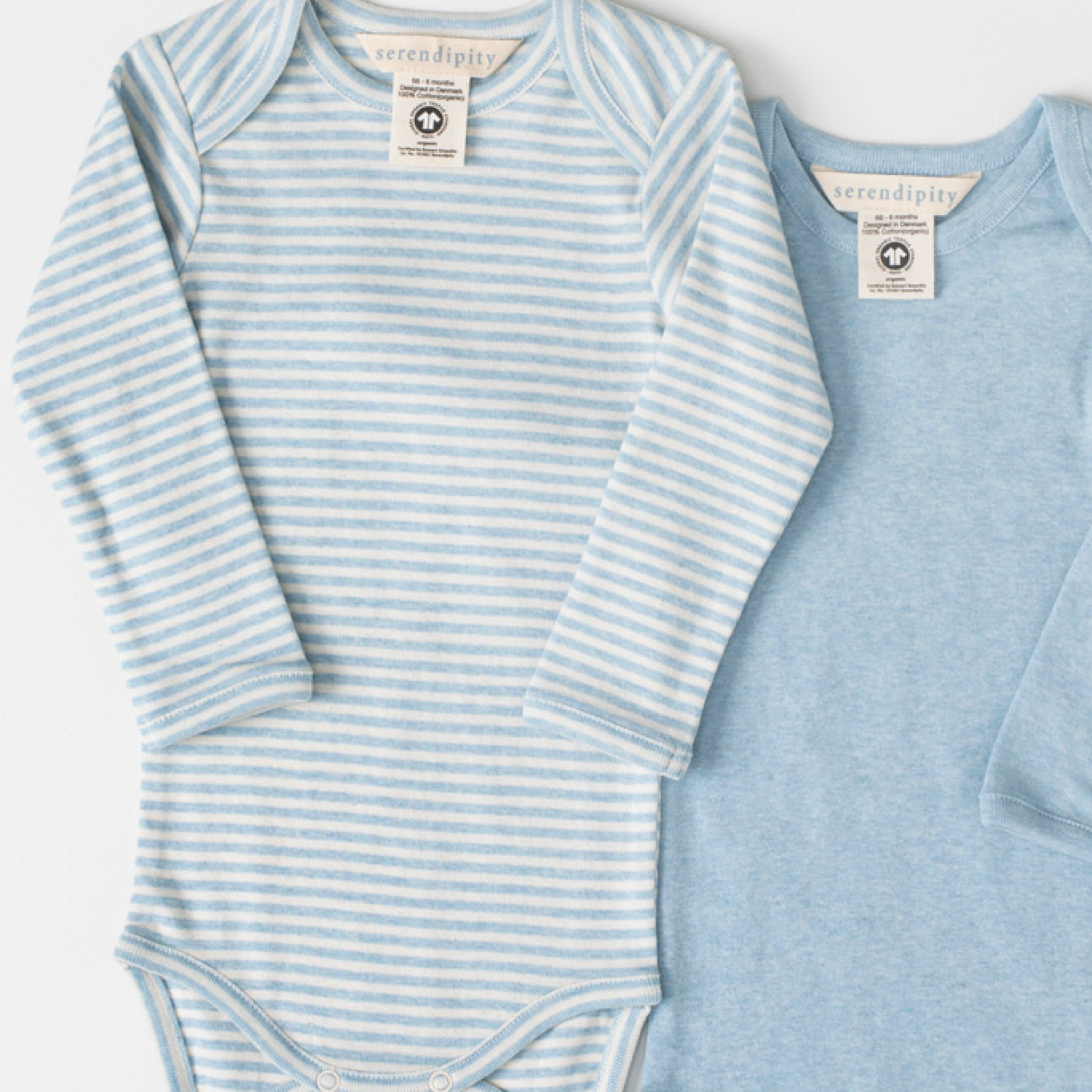 Blød langærmet body i de fineste striber fra Serendipity Organics. Body'en er fremstillet i en blød økologisk bomuld, og lukkes med trykknapper ved bleen.