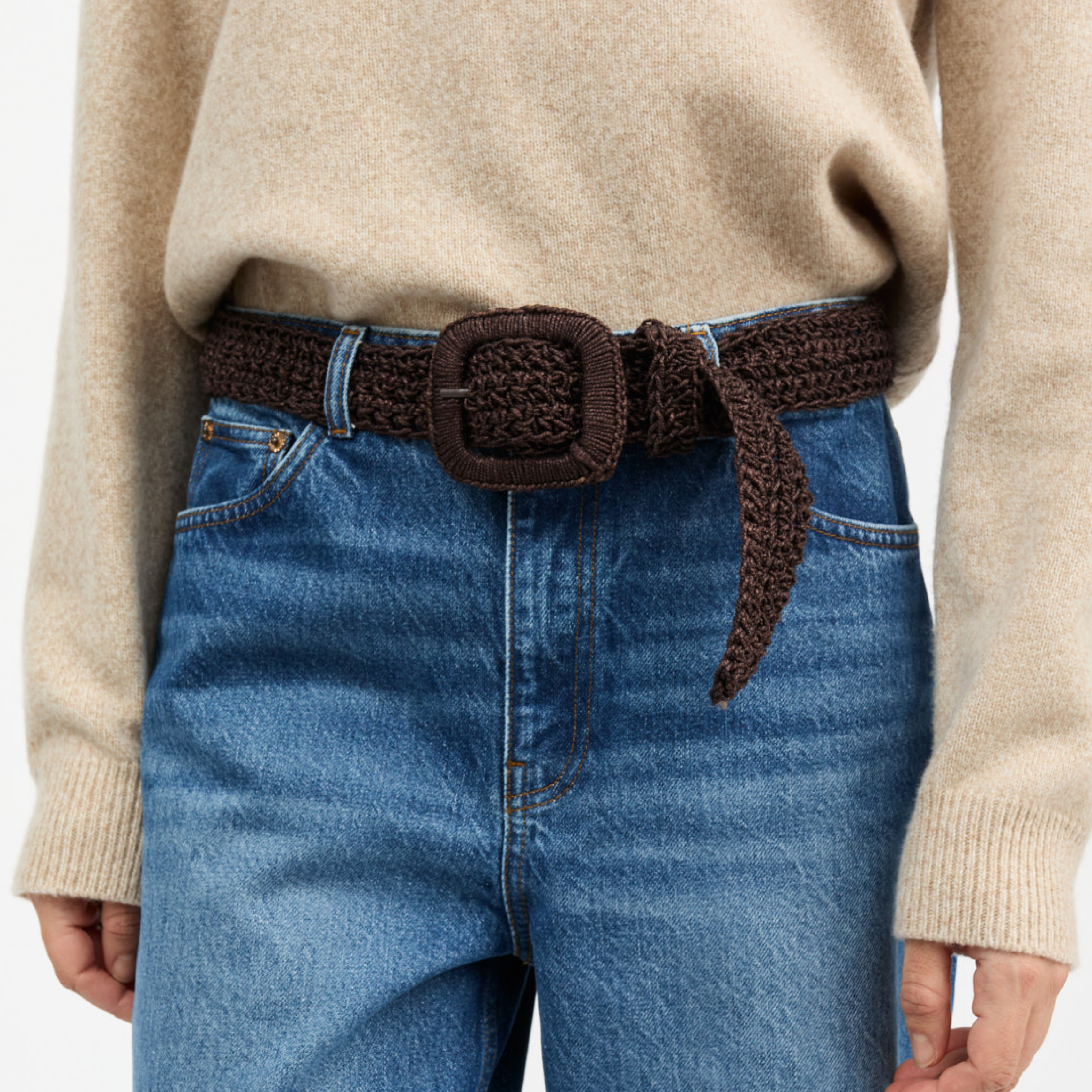 Carla Straw Belt, Dark Brown