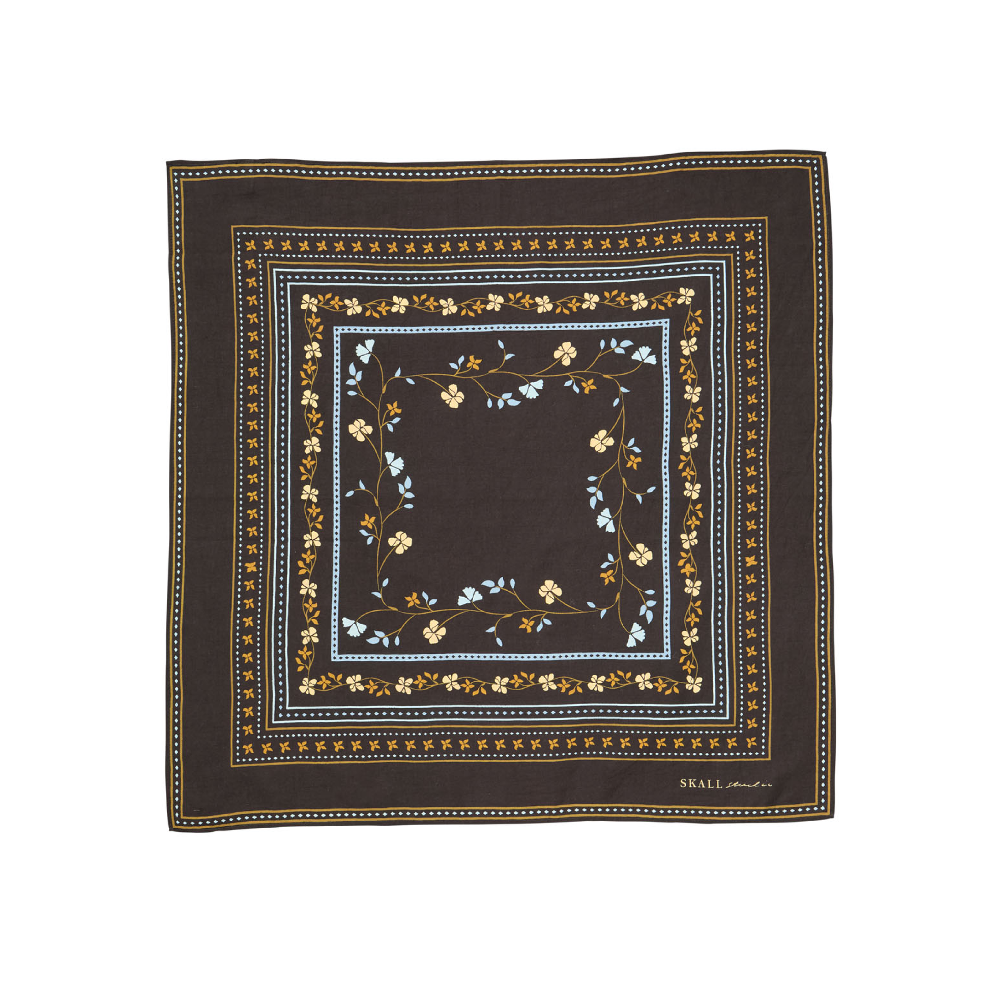 Skall Floral Scarf, Dark Brown (55x55 cm)