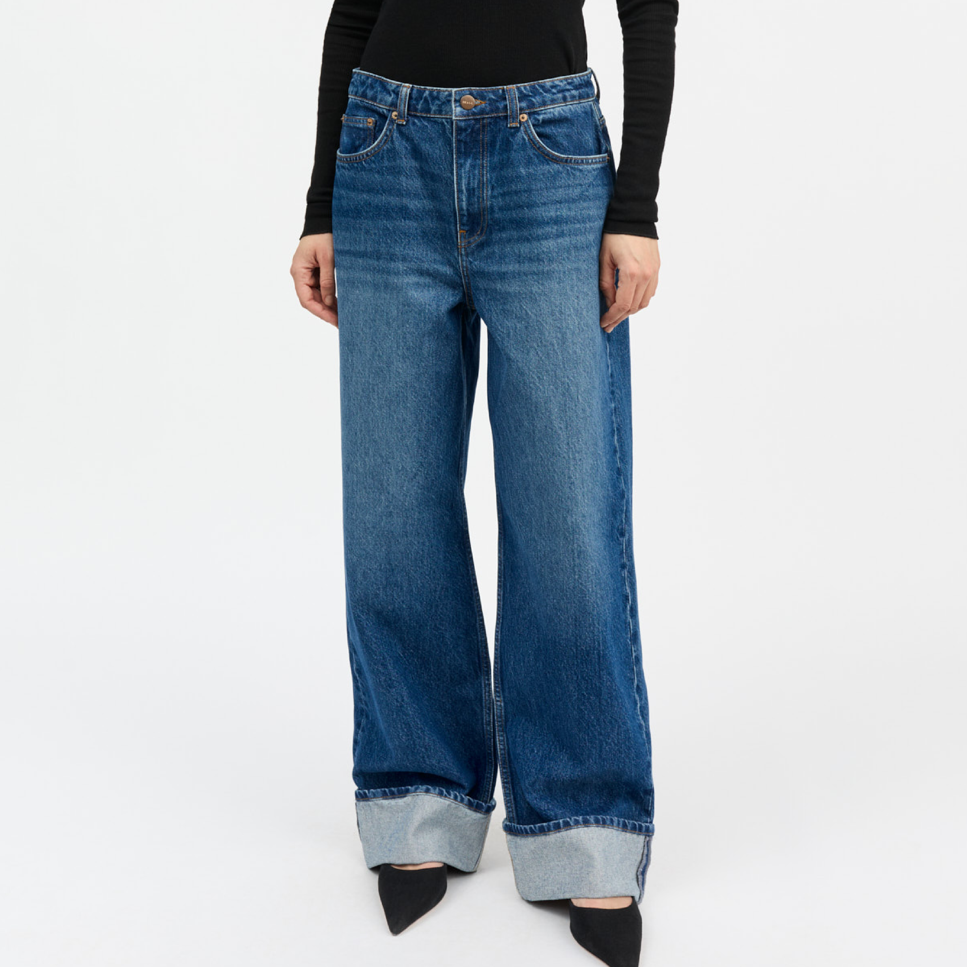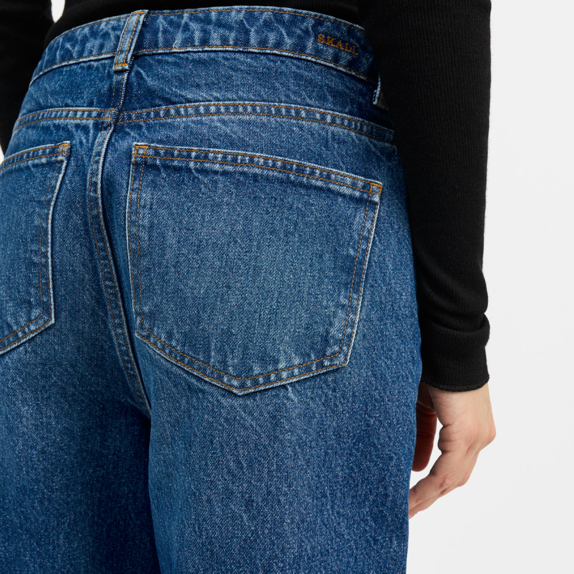 Wilma Jeans fra Skall Studio, i en smuk blå vask. De smukke jeans er fremstillet i økologisk bomuld, og er en del af Skall Studios GOTS-certificerede denimlinje. De har et klassisk five pocket-udtryk samt bæltestropper. På linningen bagpå har de et broderet SKALL-logo.v