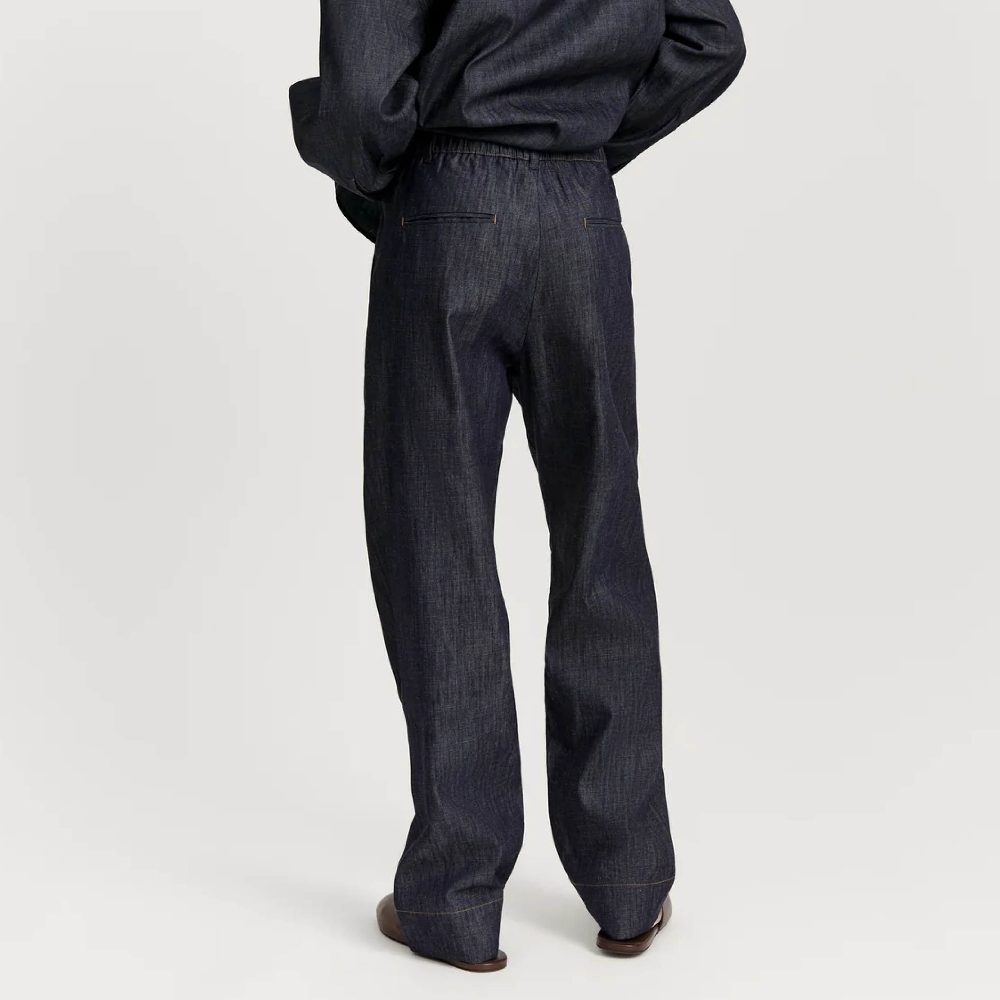 Miles Pant Denim er en casual herre-inspireret bukse med et løst og afslappet snit, fra Aiayu. Denne version af Miles Pant er lavet i en blød og let, denim-inspireret kvalitet fremstillet af 100% økologisk og regenerativt dyrket bomuld. Miles Pant har sidelommer, lige ben og elastisk taljebånd for en behagelig pasform.