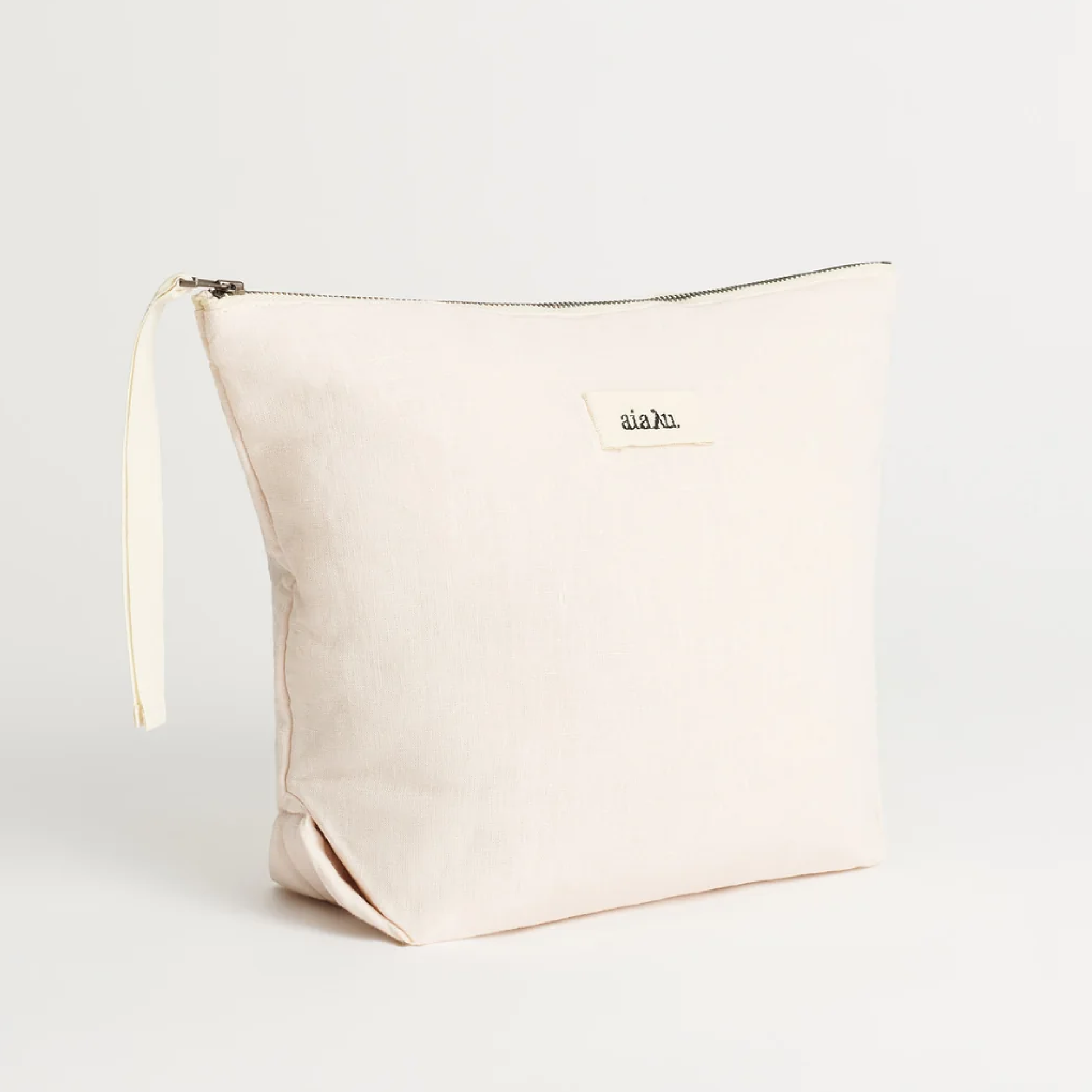 Praktisk toilettaske af økologisk bomuld med lynlåslukning fra Aiayu. 'Pouch Linen' har indvendig bomuldsforing og kan let rengøres. Ideel til opbevaring af make-up eller toiletsager, hvad enten du er på farten eller derhjemme.