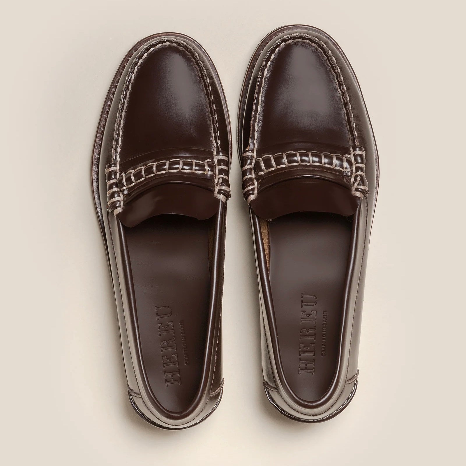 Den klassiske Borada loafer i farven 'Dark Brown' fra HEREU. Skoen er håndsyet i spanien med traditionelle mokkasinkonstruktion i spansk kalveskind, og har fine detaljer foran.