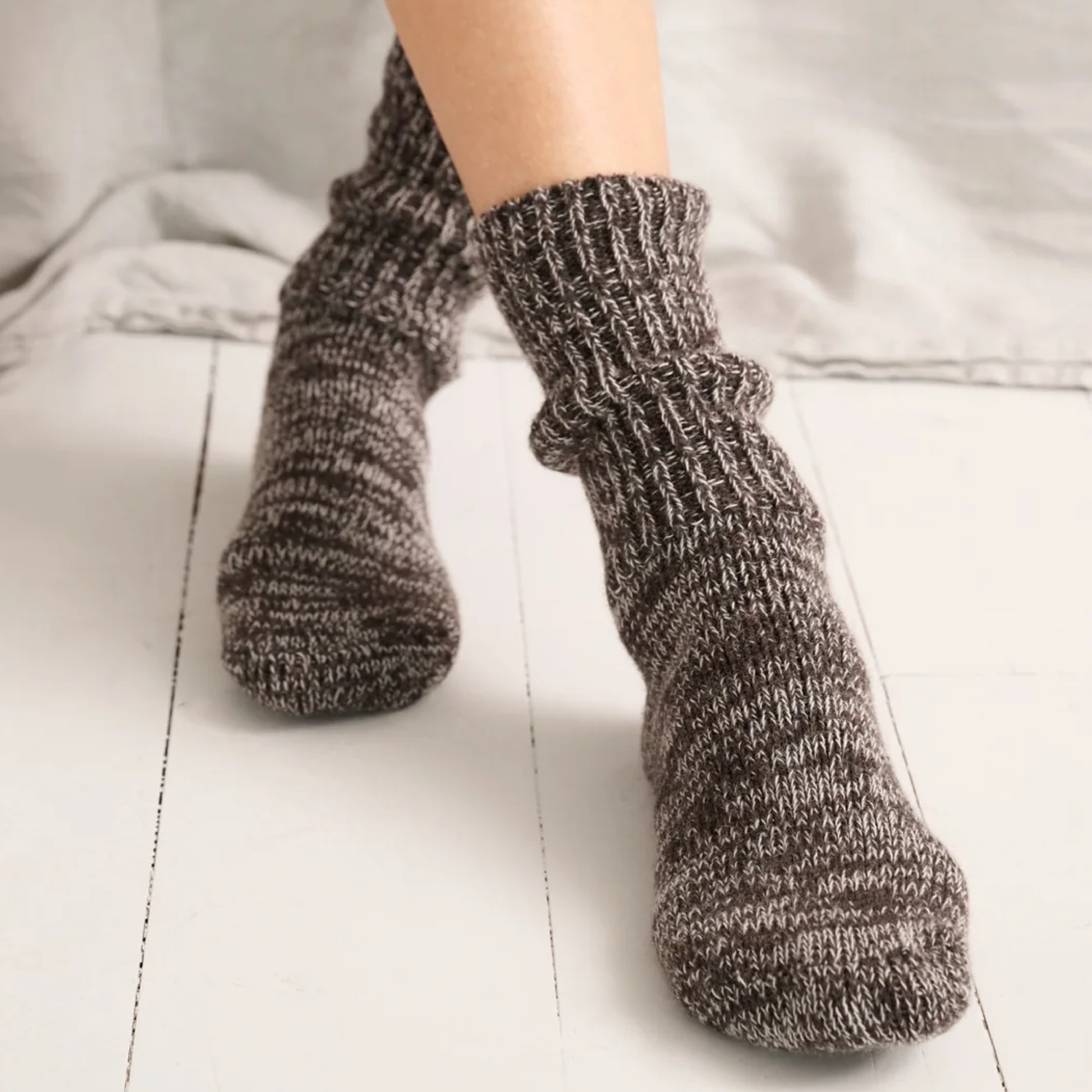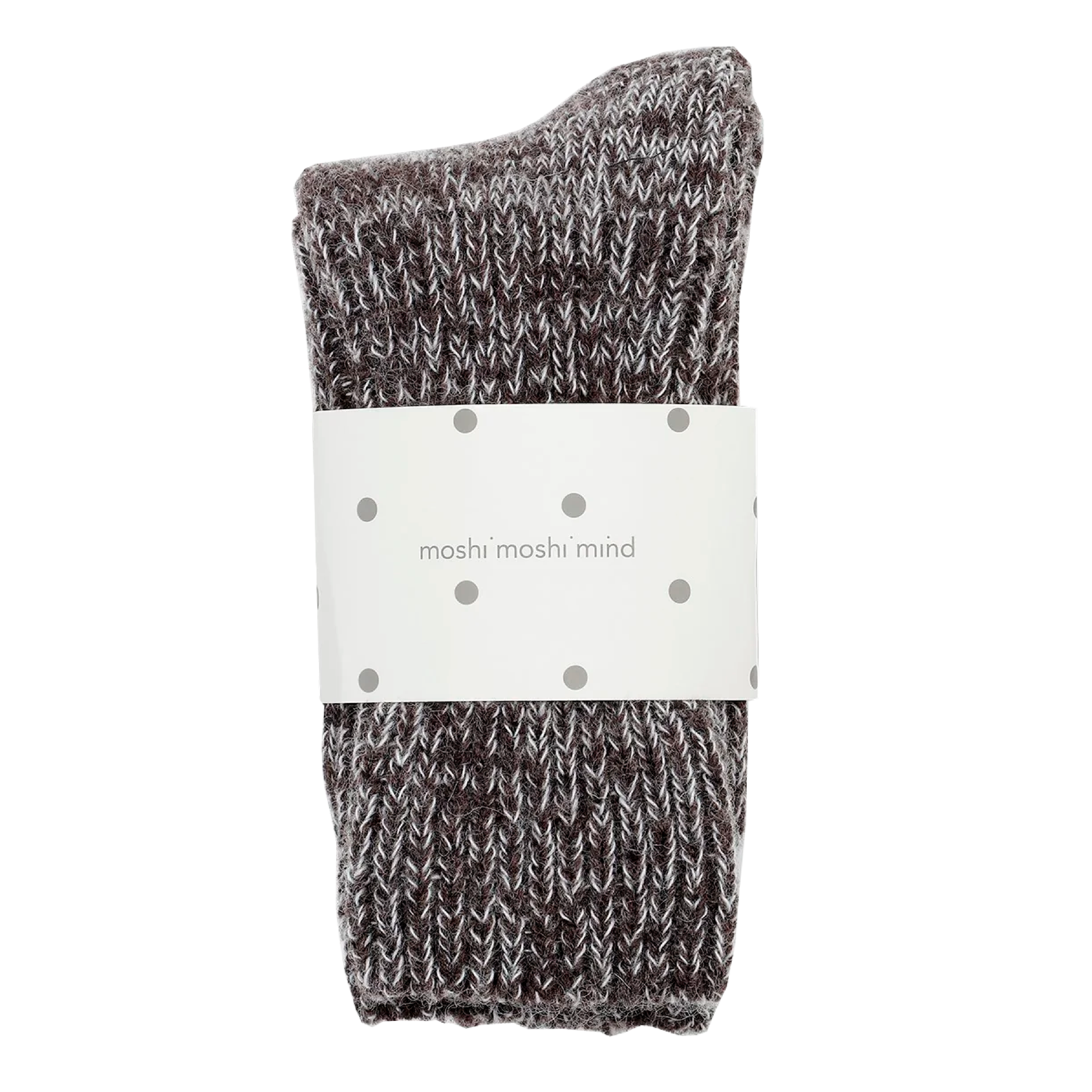 Skønne og varme strikkede strømper fra Moshi Moshi Mind, i en skøn uldblanding. Strømperne er i ribkvalitet og er behagelig at have på. Den perfekte strømpe til at holde dine fødder varme i de kolde måneder.