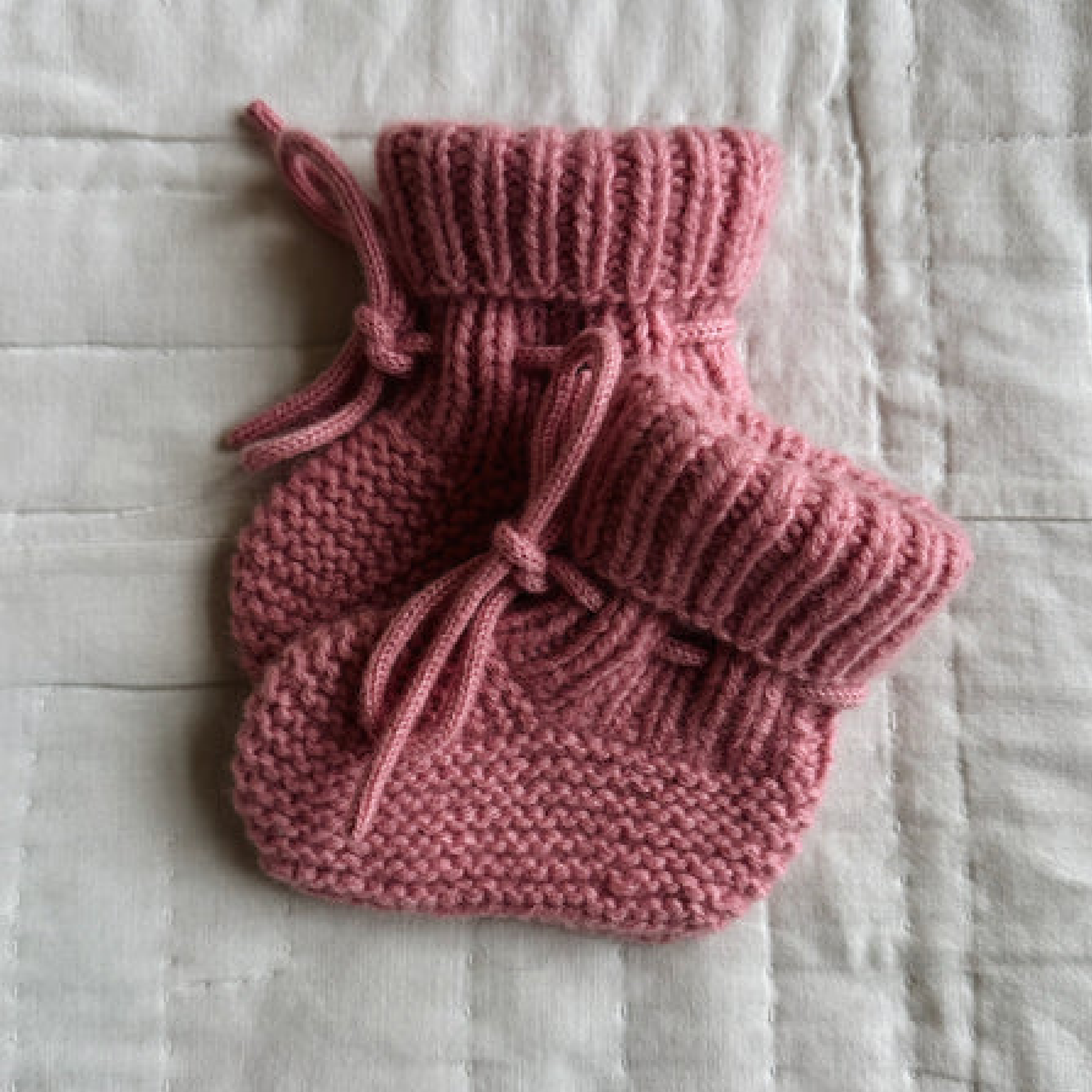 Alpha cashmere futterne fra det fine danske brand, Lalaby. Futterne er håndstrikket i 100% cashmere, og lukkes med en blød snor om anklen - så de sidder godt på de små fødder.
