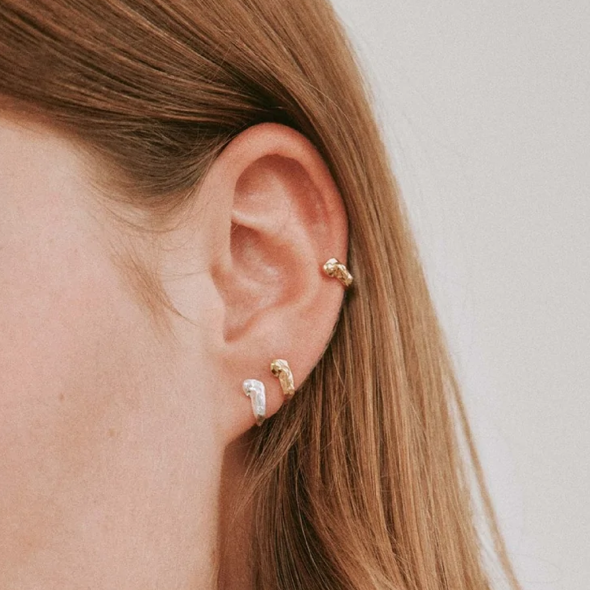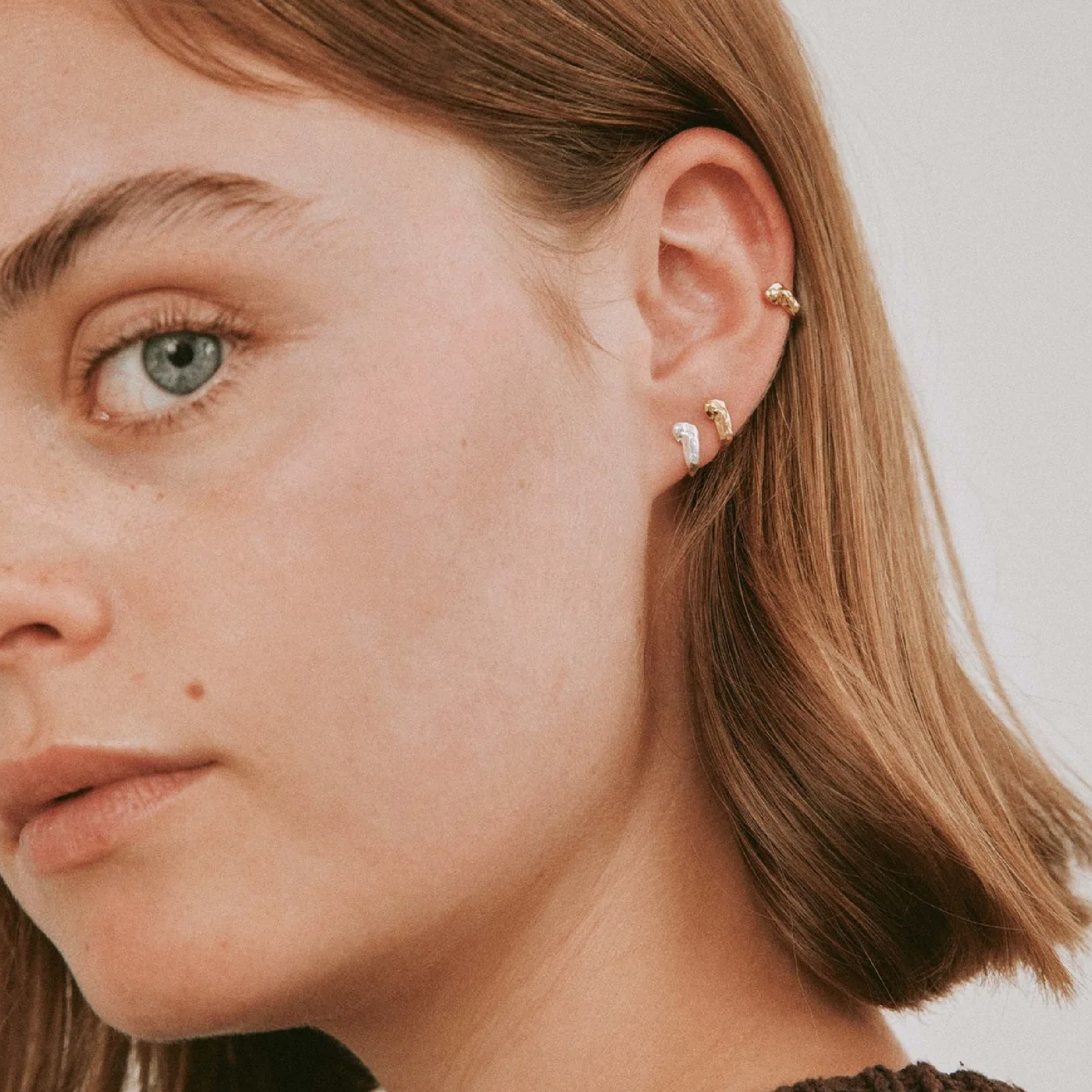 De fine og enkelte ‘Theo’ øreringe fra danske Lea Hoyer. Theo øreringene er en miniørering, der klamrer sig tæt rundt om øret - og er nem at kombinere med andre øreringe. Sælges som et par.
