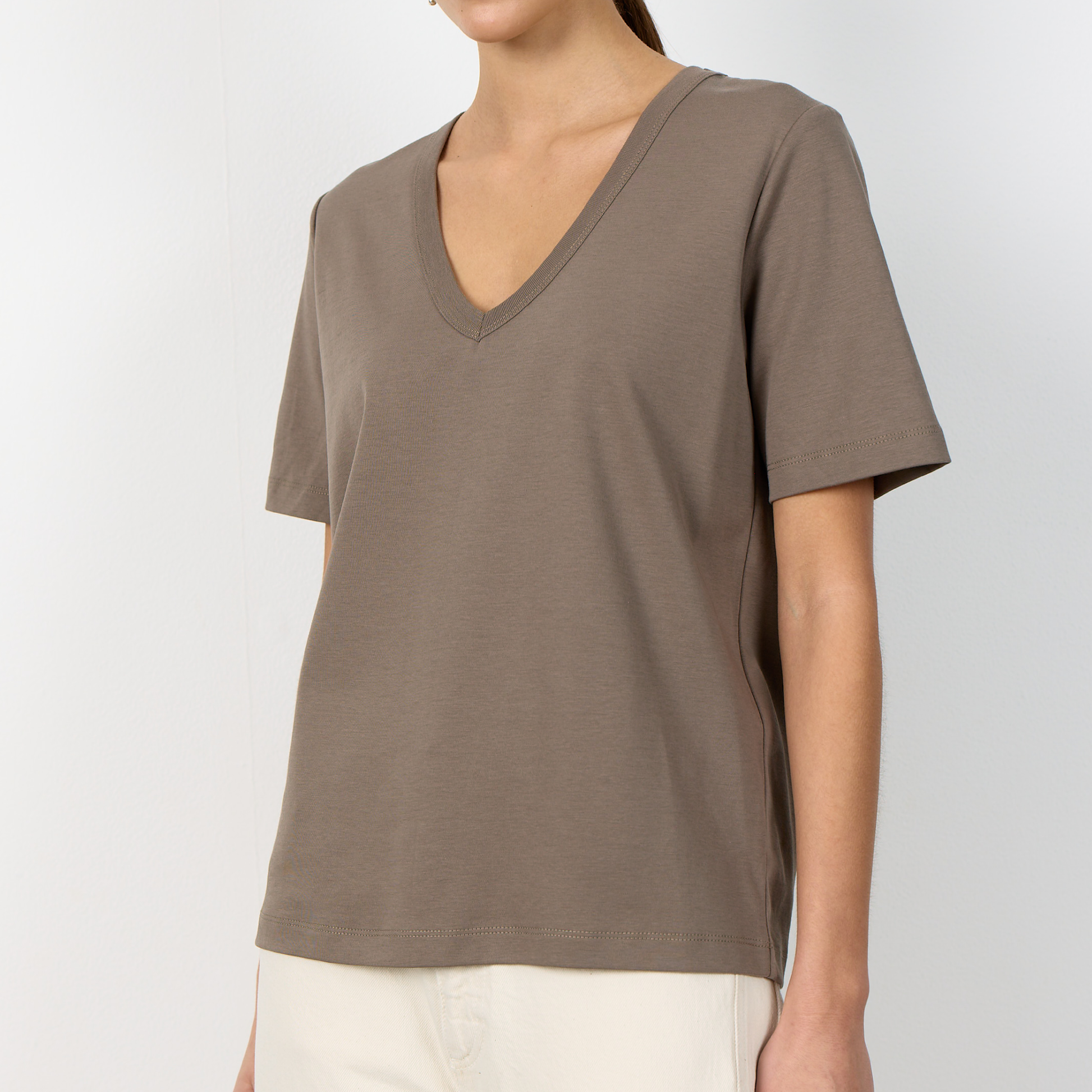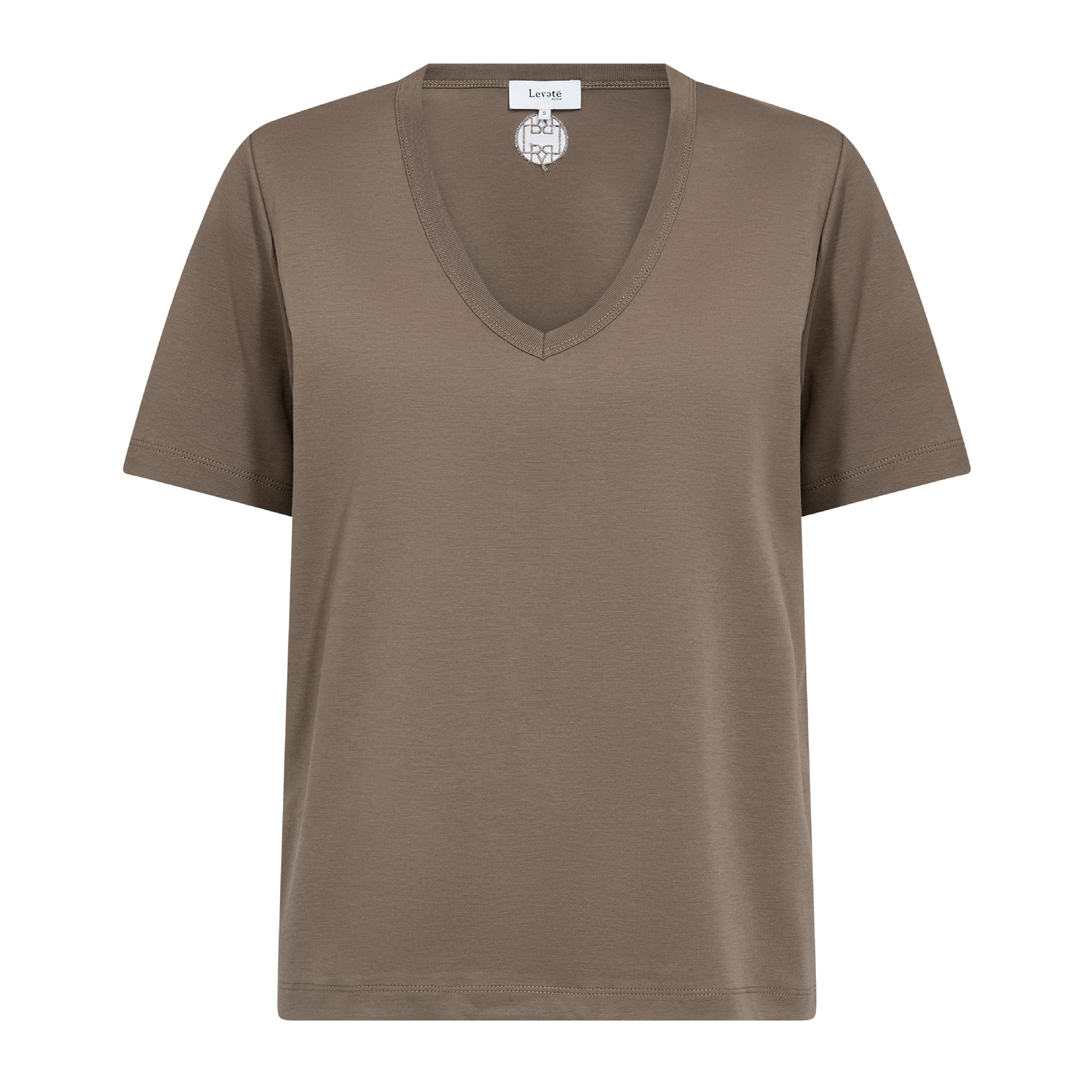 Skøn og blød basic t-shirt fra Leveté Room, i ren økologisk bomuld. T-shirten har v-hals udskæring, og holder sig utrolig godt i pasform efter vask!