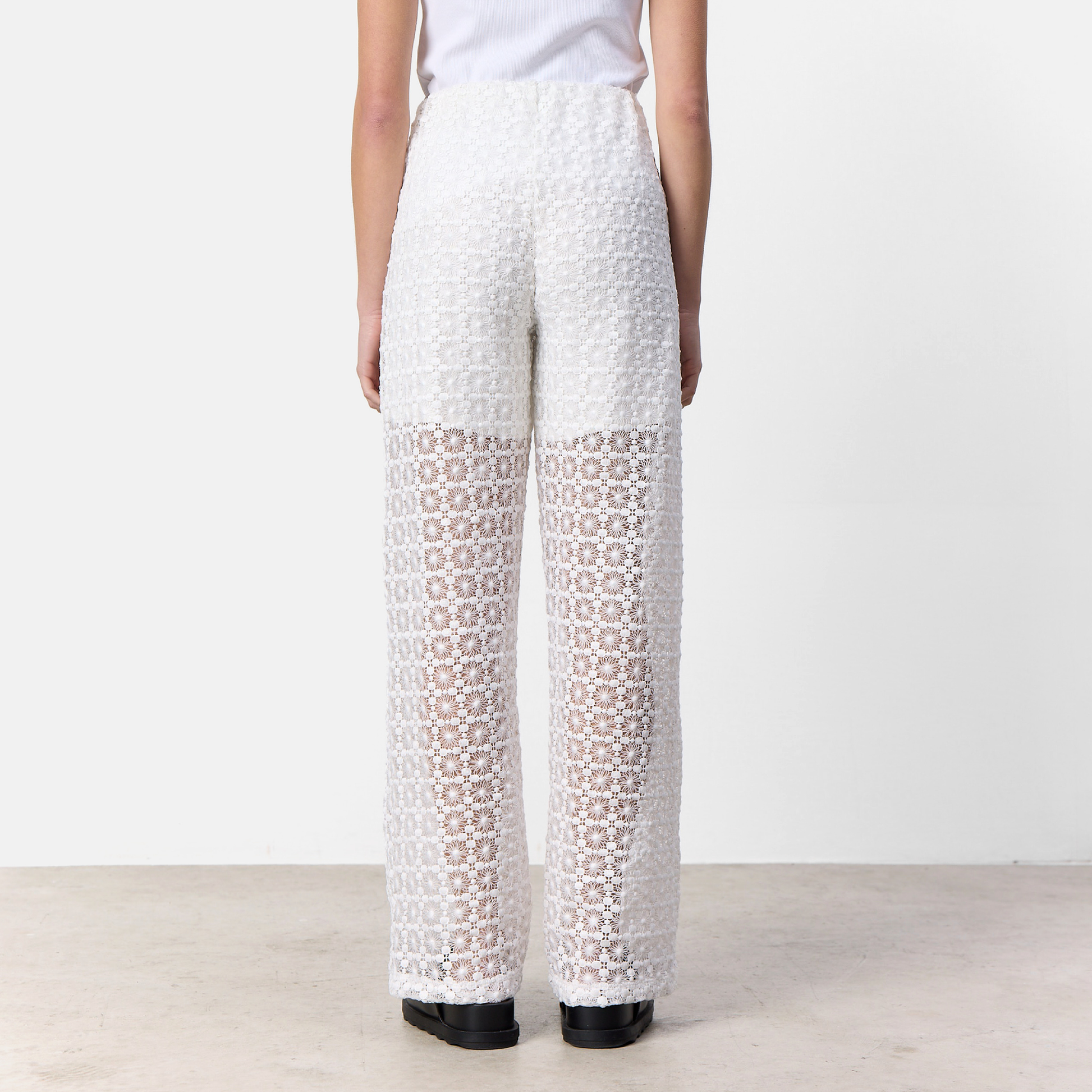 Skønne bukser med smukt blomstermønster i transparent look fra Levete Room. Bukserne har lige lige ben med fuld længde, inder-shorts og er mid waist.