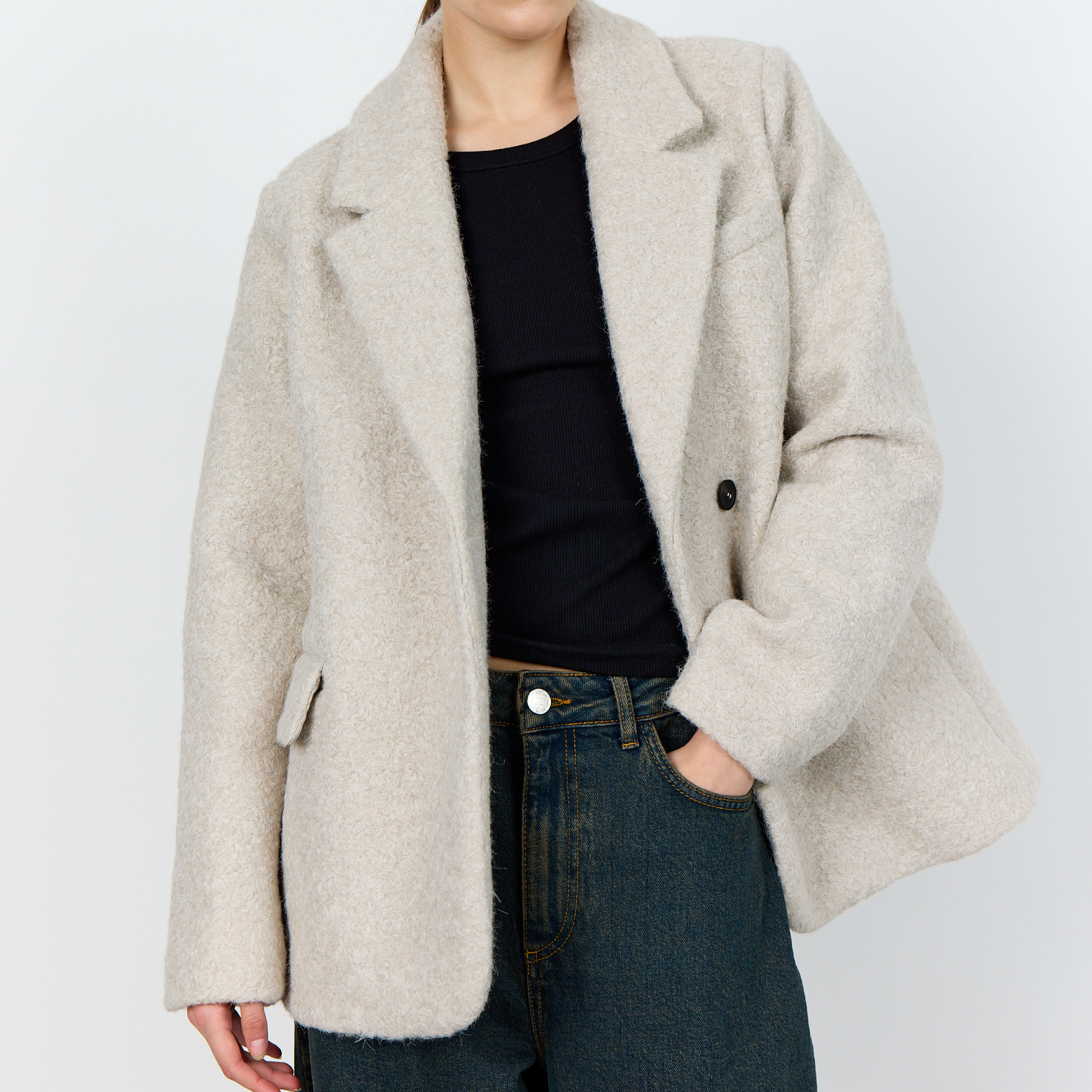 Skøn blazer fra Levete Room i en kraftig kvalitet - som også vil kunne bruges som en kort efterårs frakke.