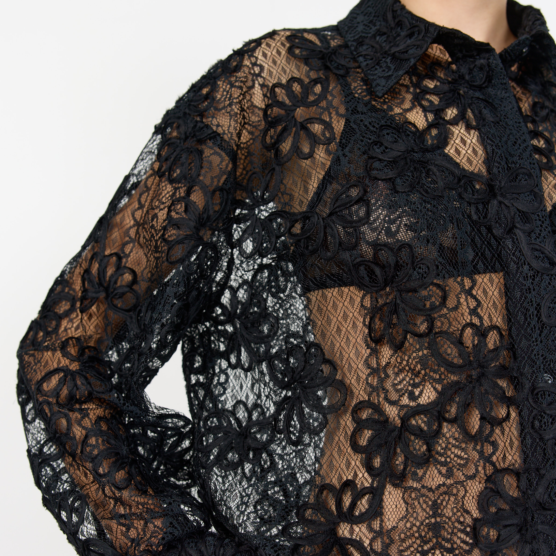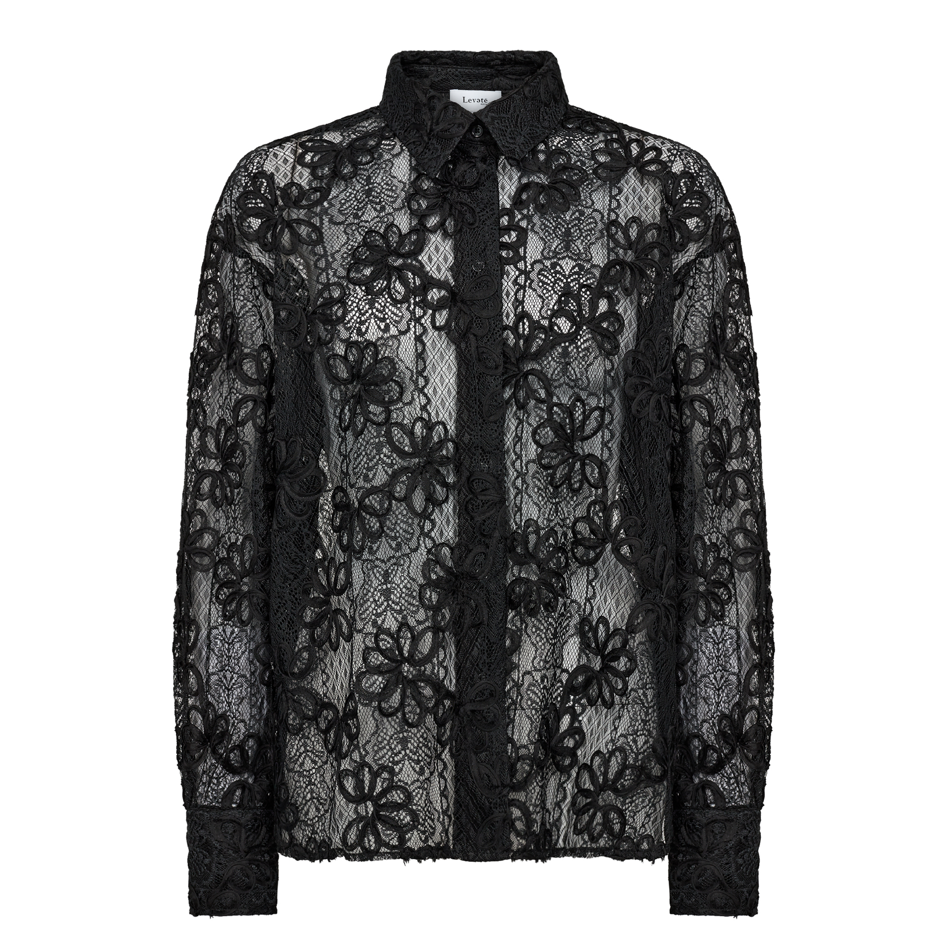 Den smukke Olera 1 skjorte fra Levete Room. Denne elegante skjorte har fine blondedetaljer, lange ærmer, en klassisk krave og knaplukning foran.