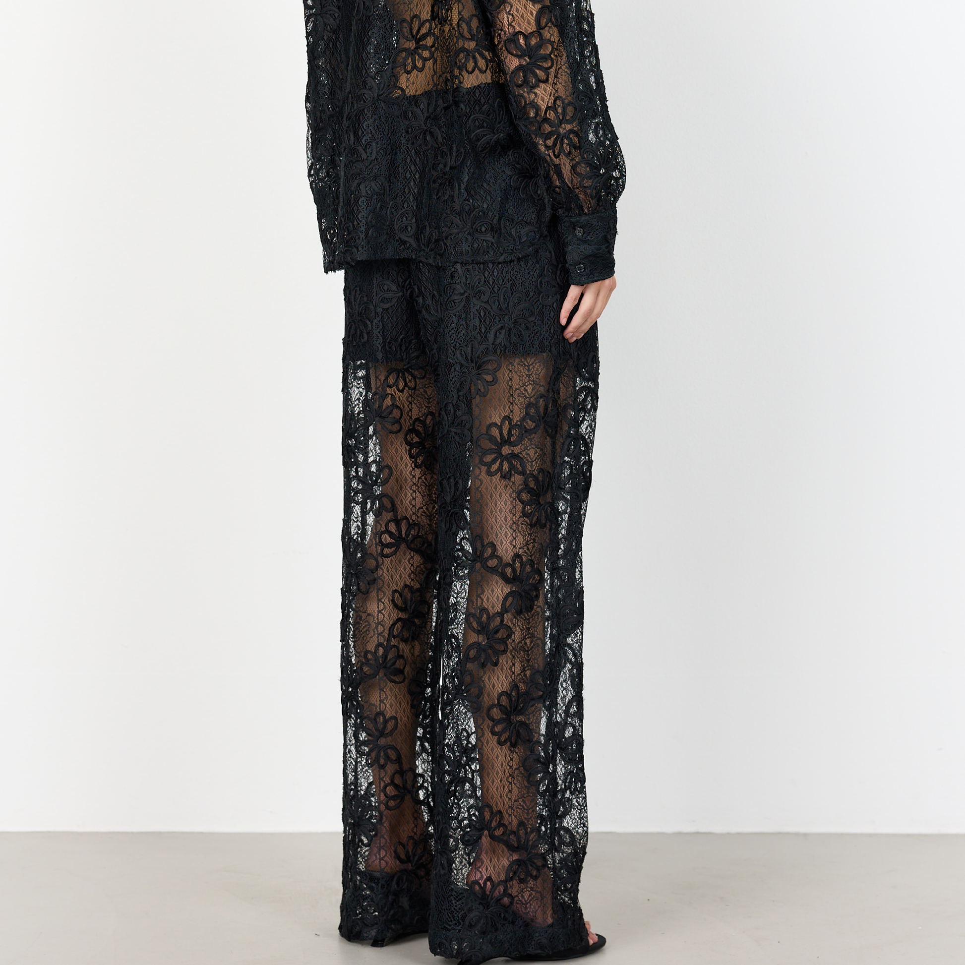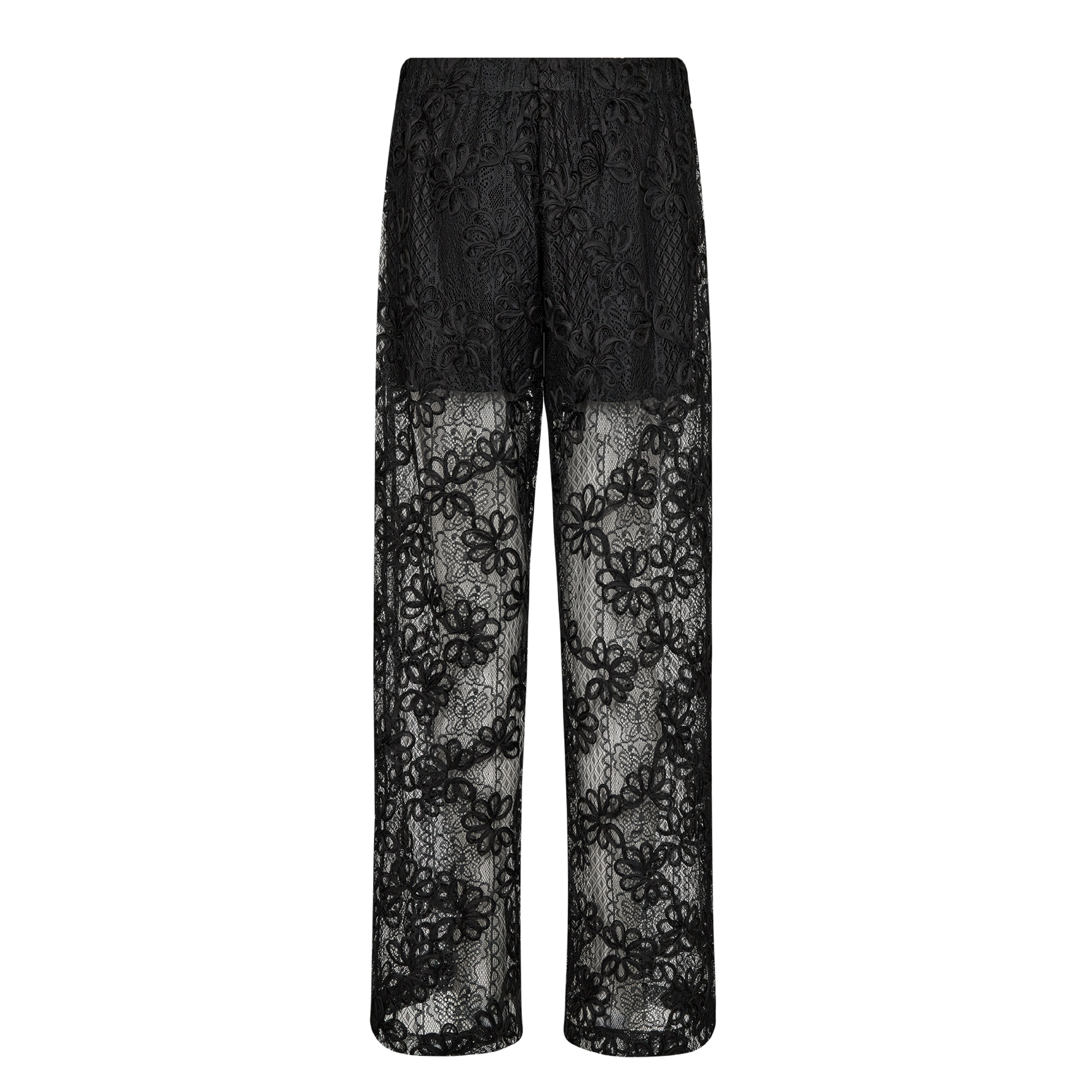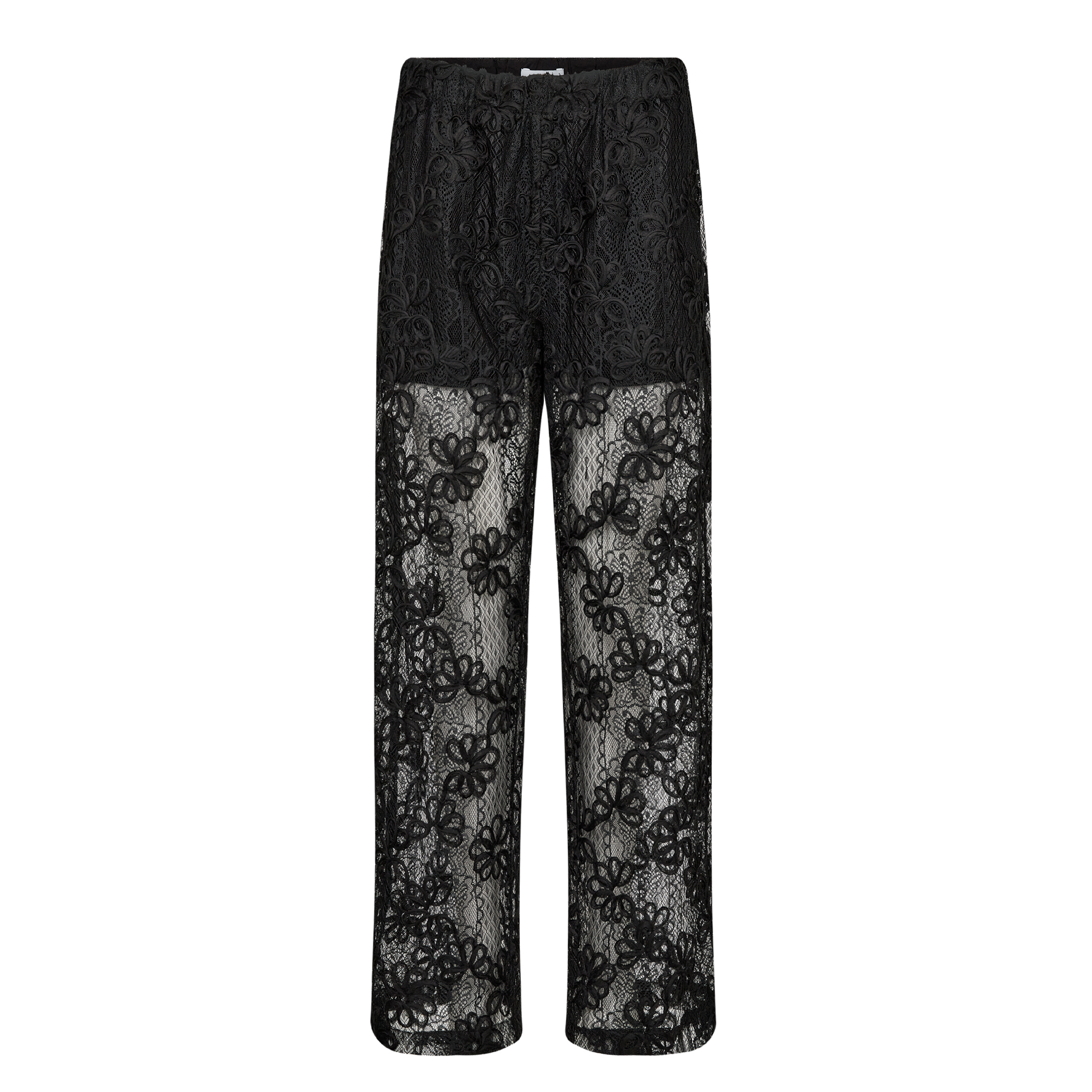 De fine Olera 3 bukser fra Levete Room. Bukserne har et elegant blondeovertræk med en behagelig elastisk linning og et design i fuld længde.