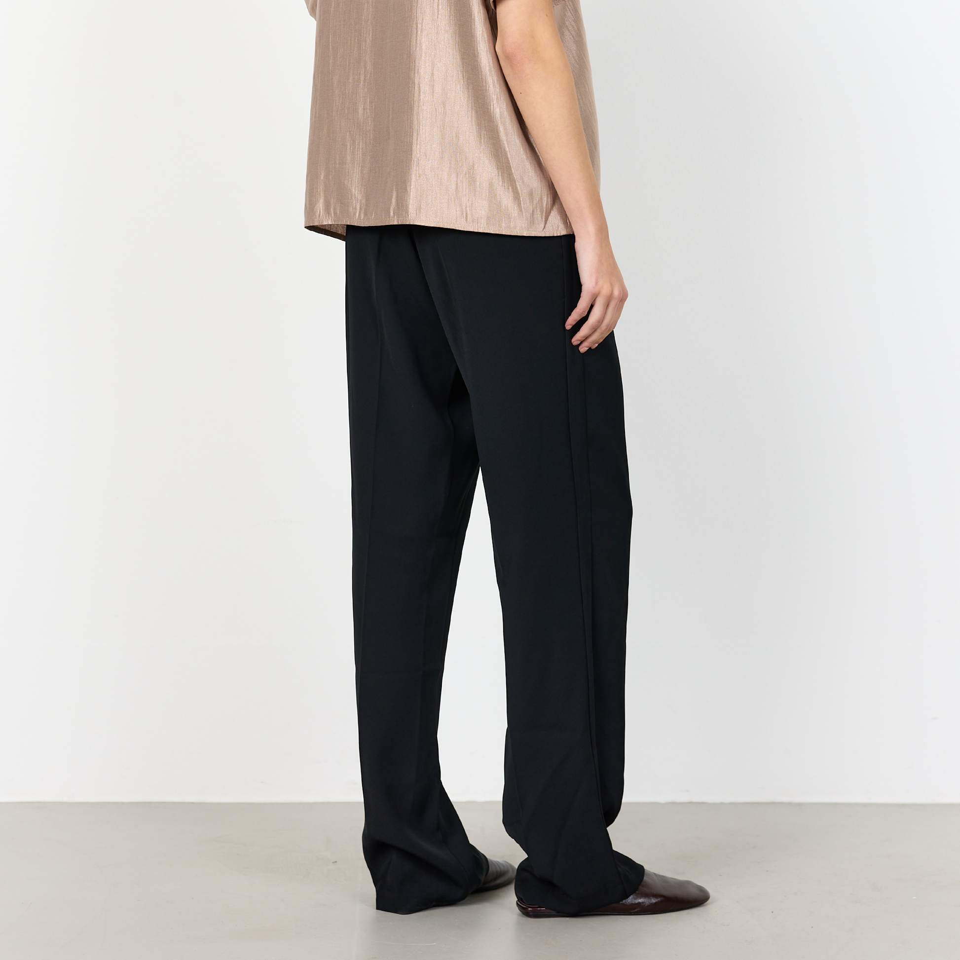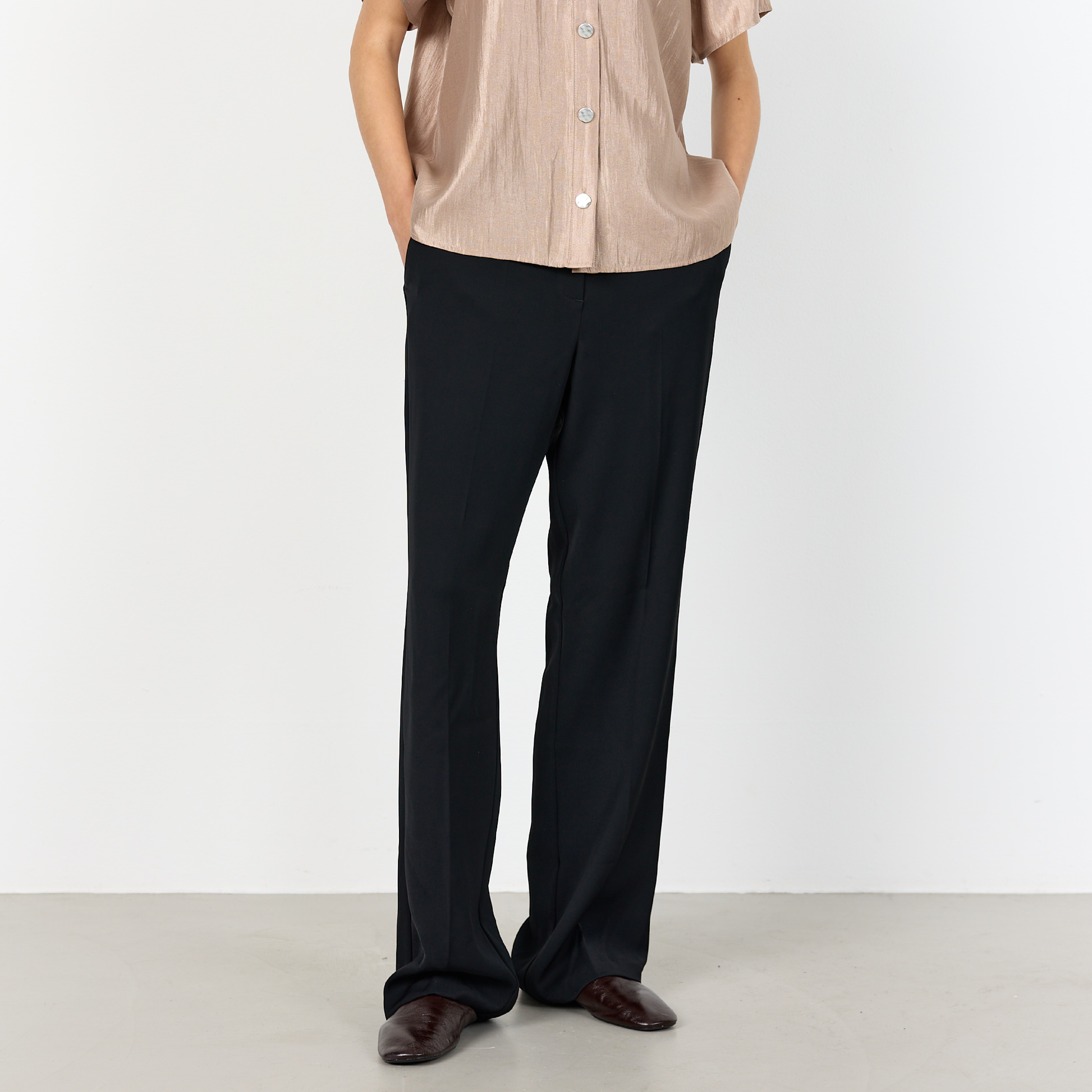 De fine Omira 1 bukser fra Levete Room. Bukserne har lige ben, en klassisk linning og pæne læg foran.