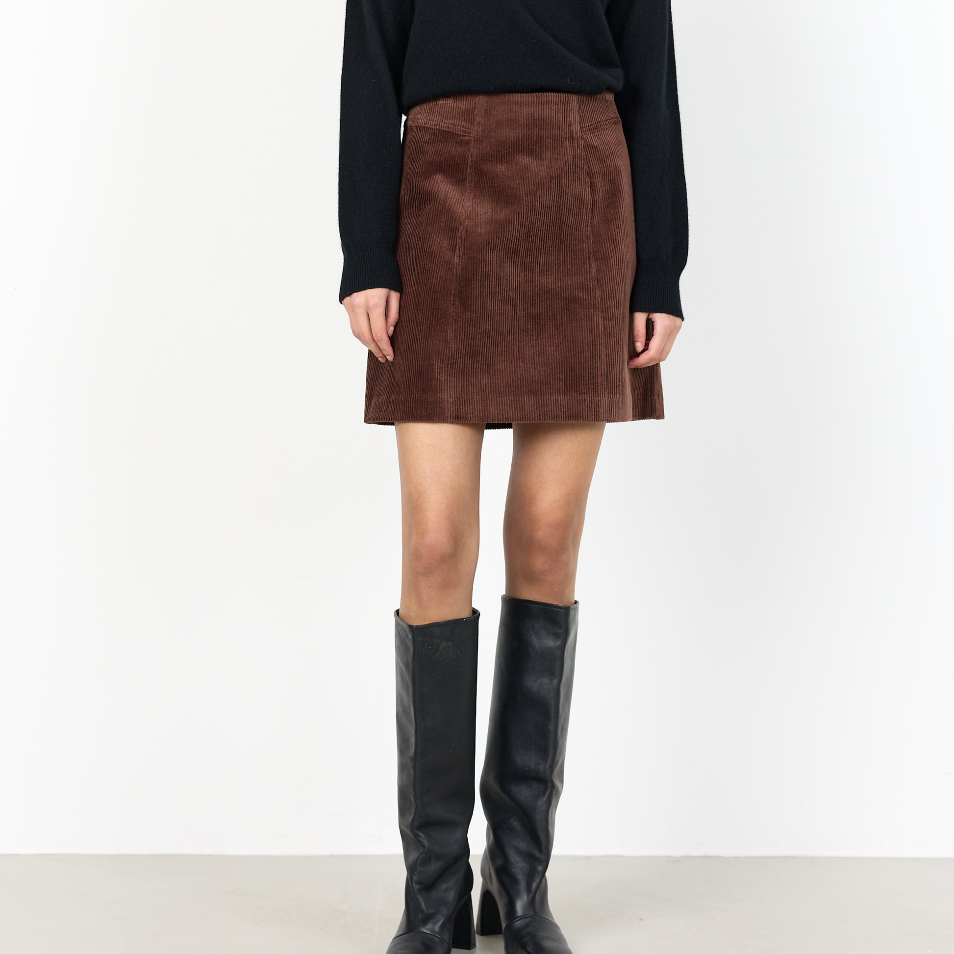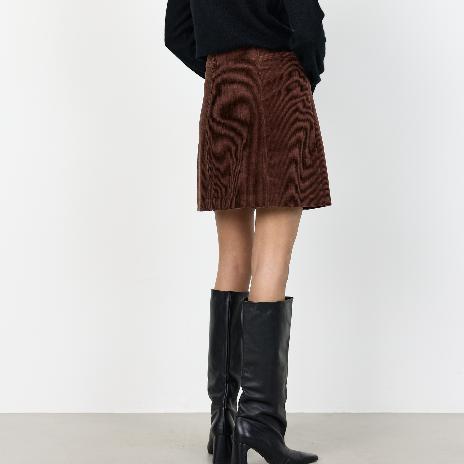 Skøn nederdel fra Levete Room, i en skøn fløjlstekstur. Denne fine nederdel har fine syningsdetaljer og en minilængde.