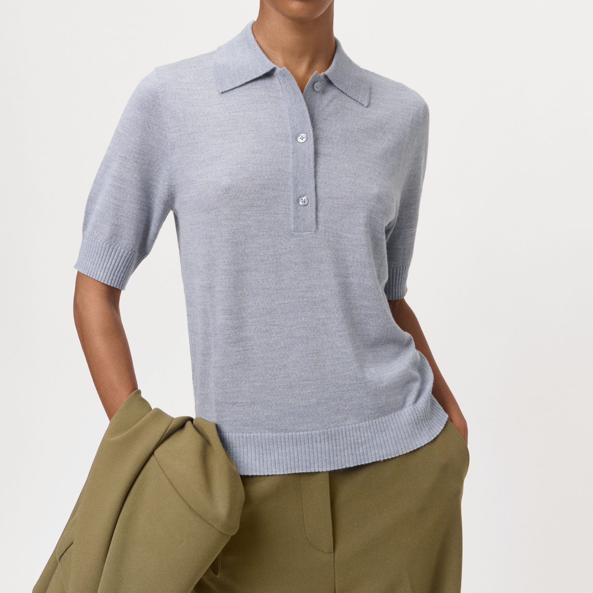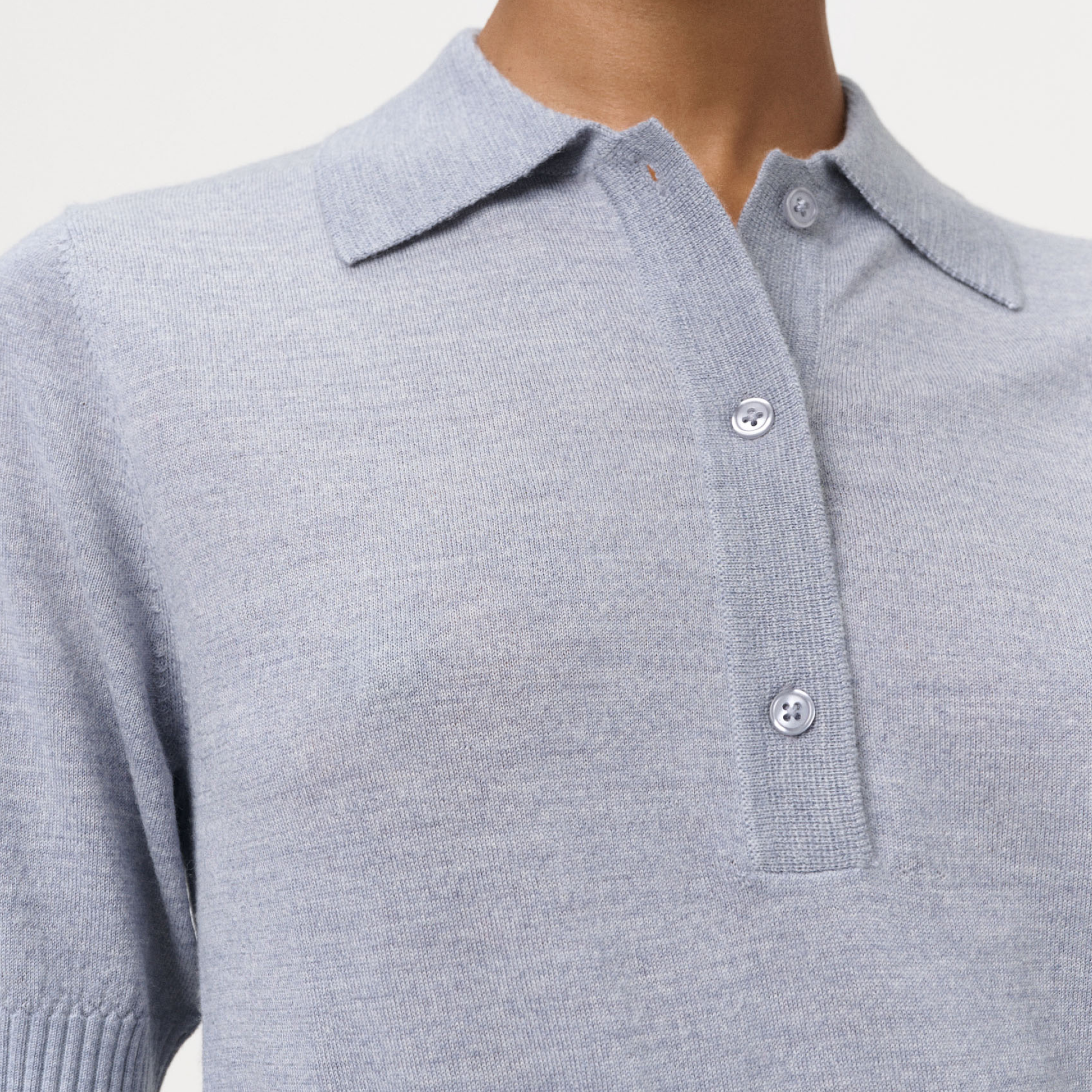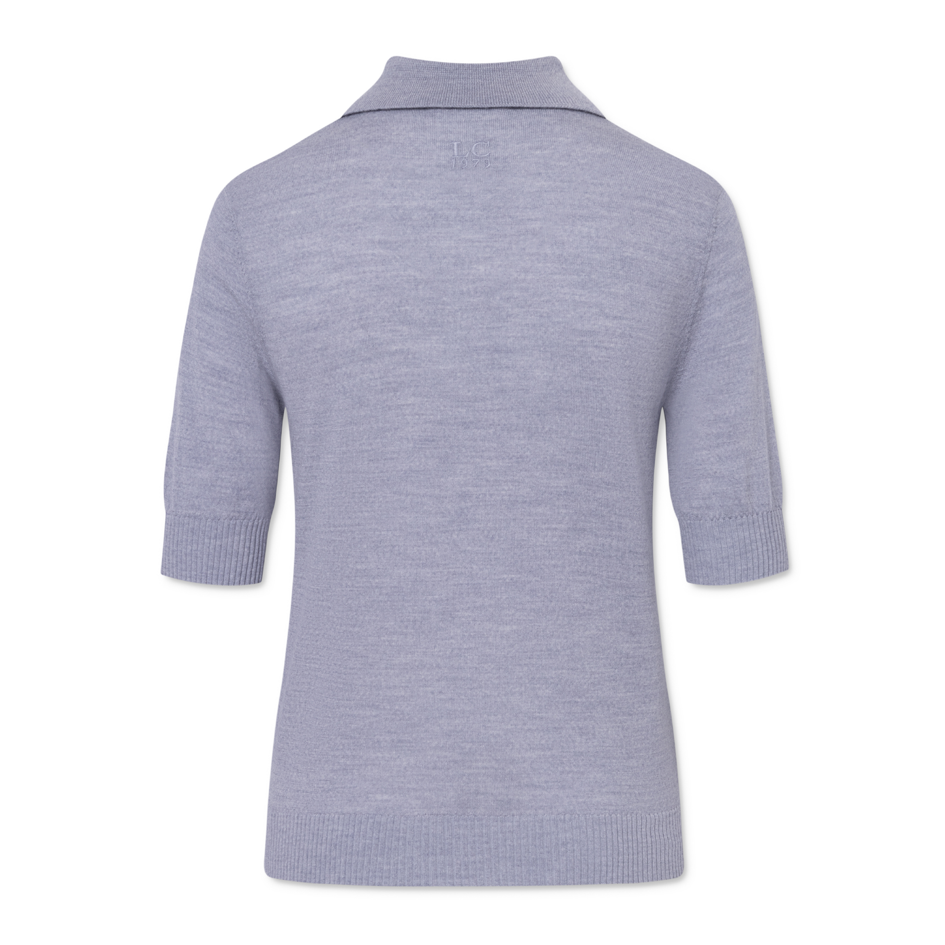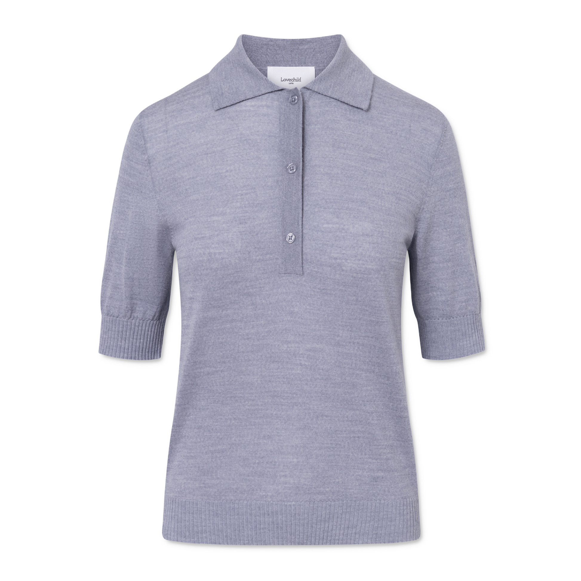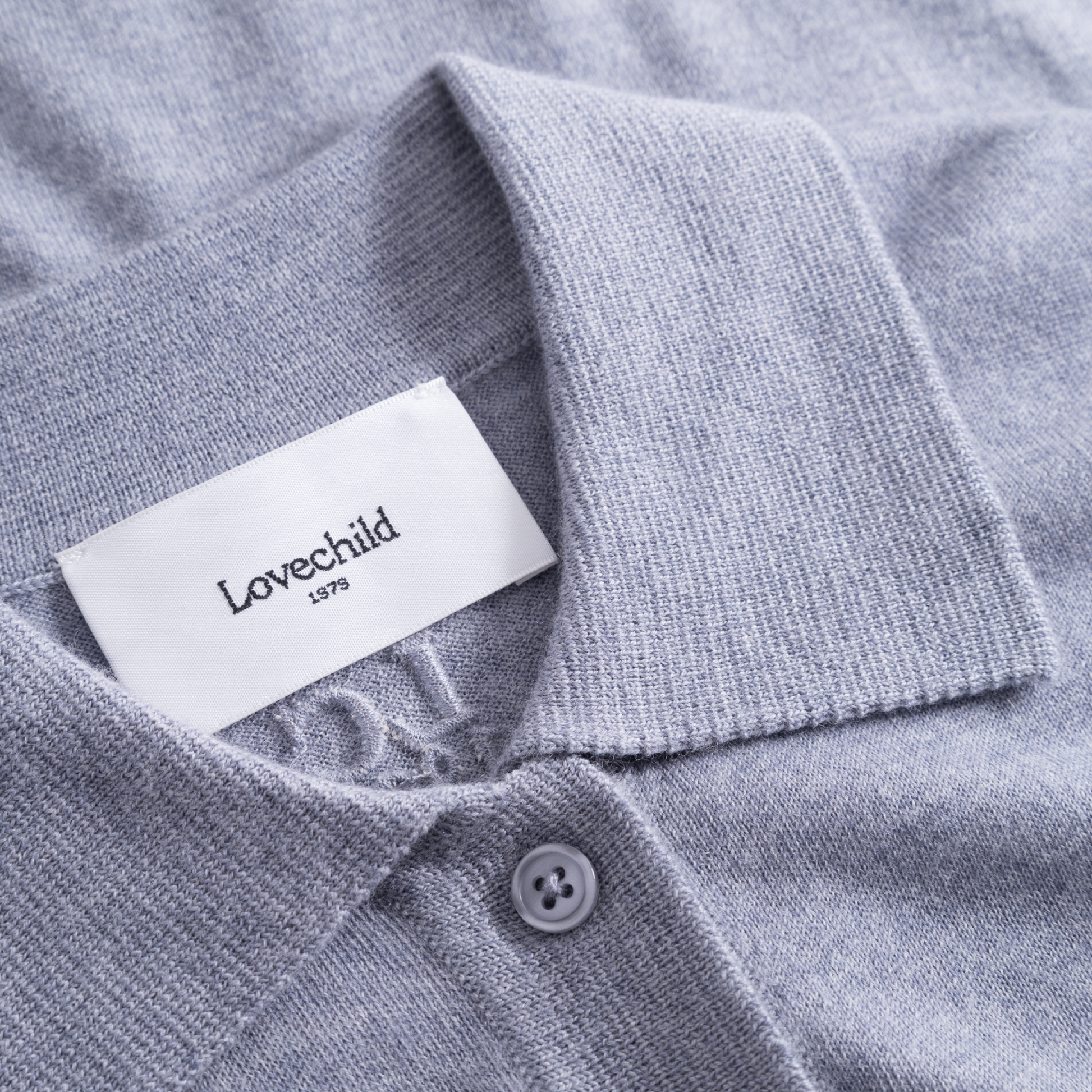 Skøn kortærmet polo strik fra Lovechild. Polo'en har et broderet logo bagpå