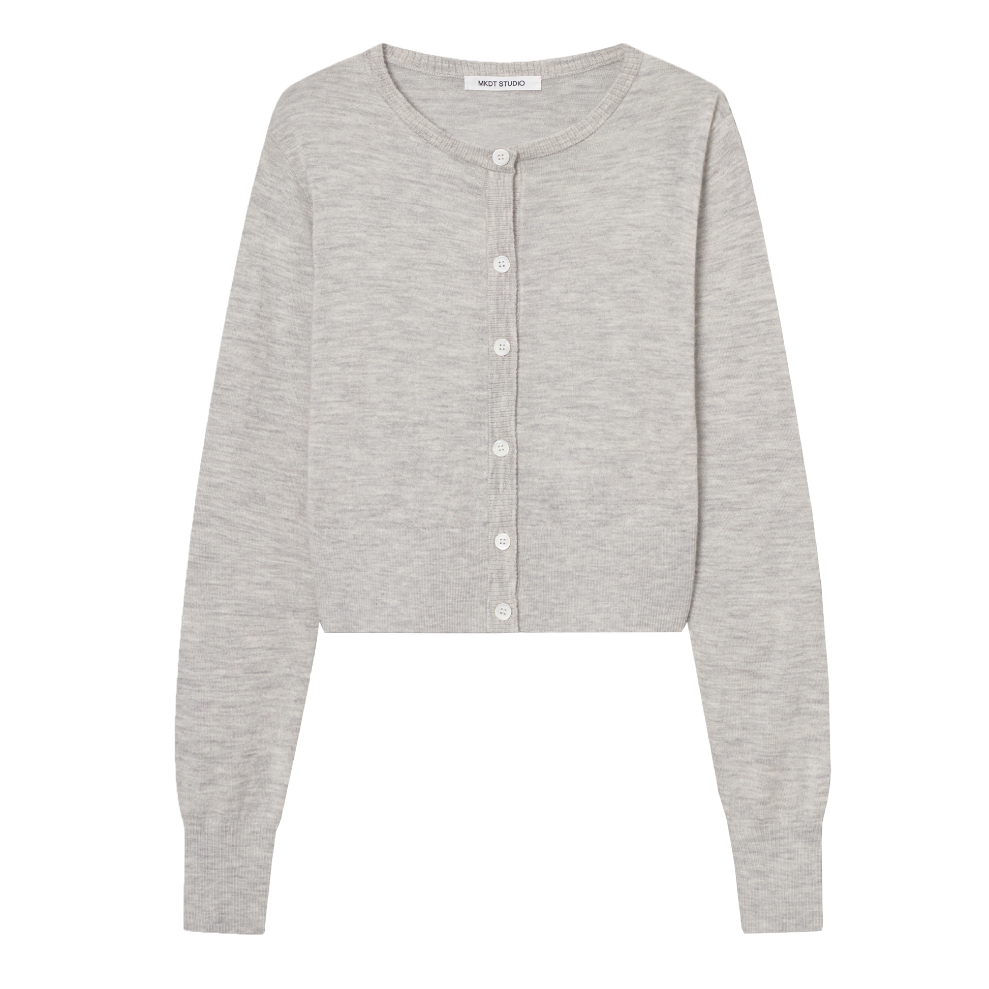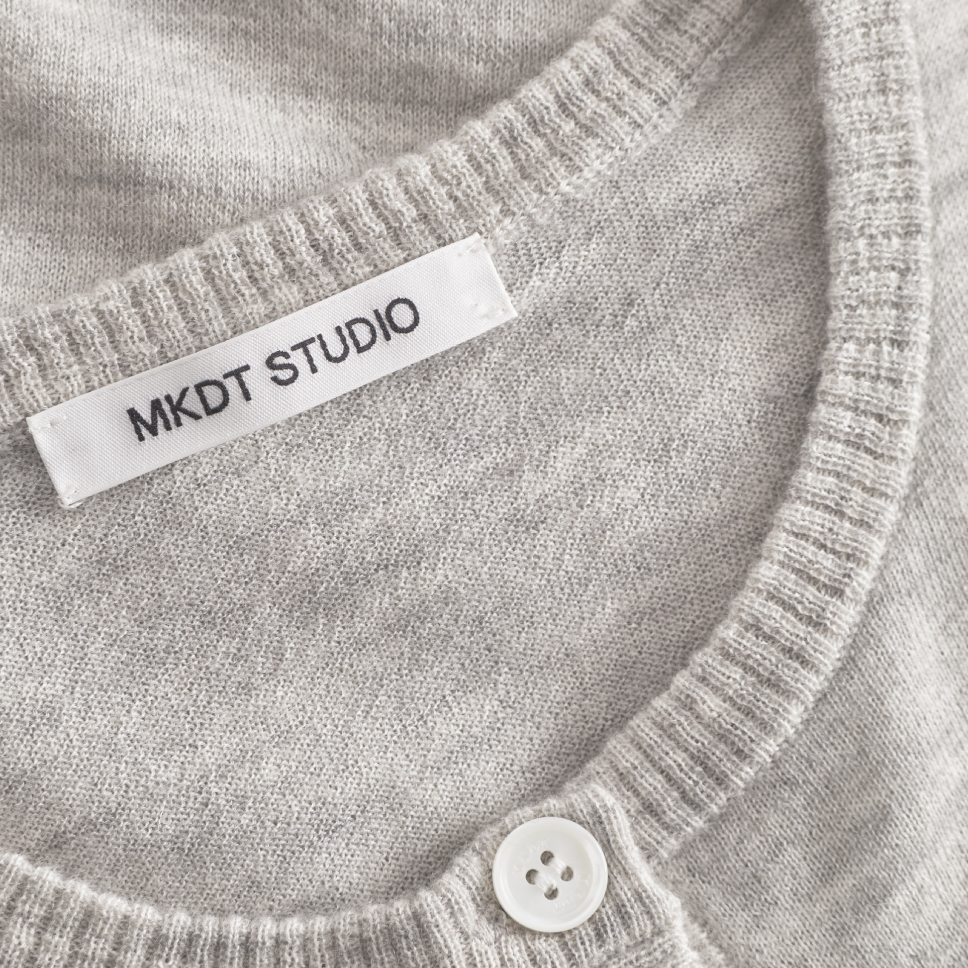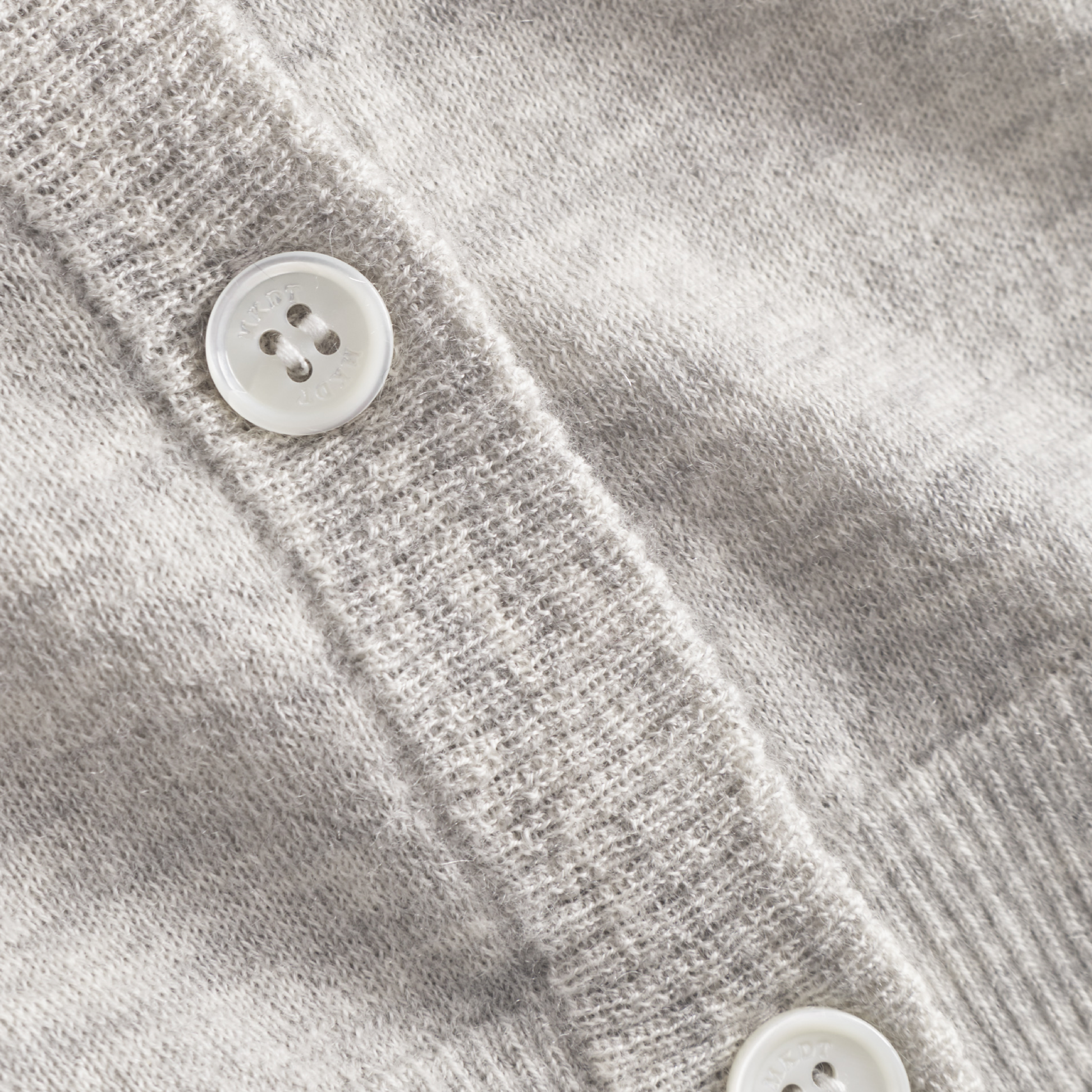 Klassisk og blød cardigan i cashmere fra Mark Kenly Domino Tan, i den smukkeste lysegrå farve.