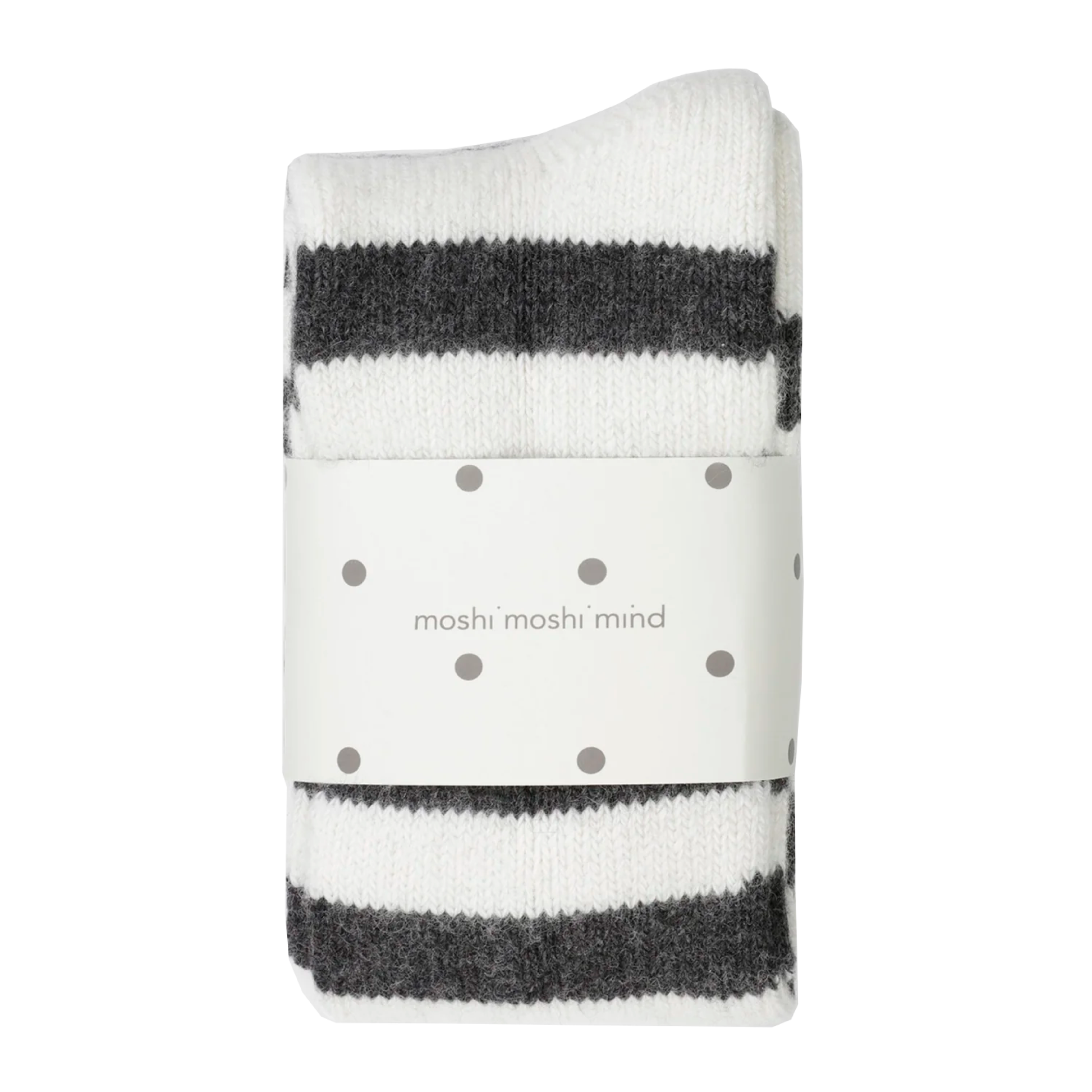 Skønne og varme strikkede strømper fra Moshi Moshi Mind, i en skøn cashmere-kvalitet. Den perfekte strømpe til at holde dine fødder varme i de kolde måneder.