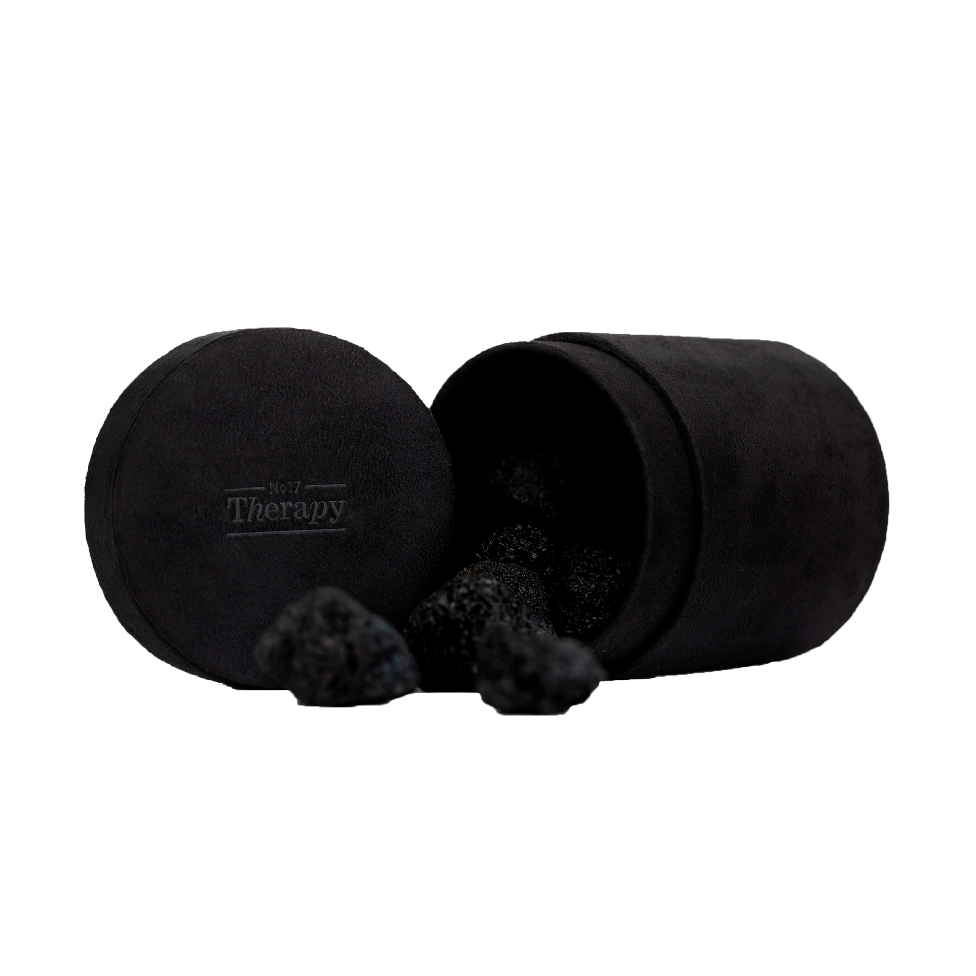 Lavasten i æske fra No17 Therapy, der bruges til aroma olier. Lavasten er perfekte til æteriske aroma olier, fordi de er porøse og derved langsomt afgiver duften fra aroma olierne inde fra hullerne i stenene.