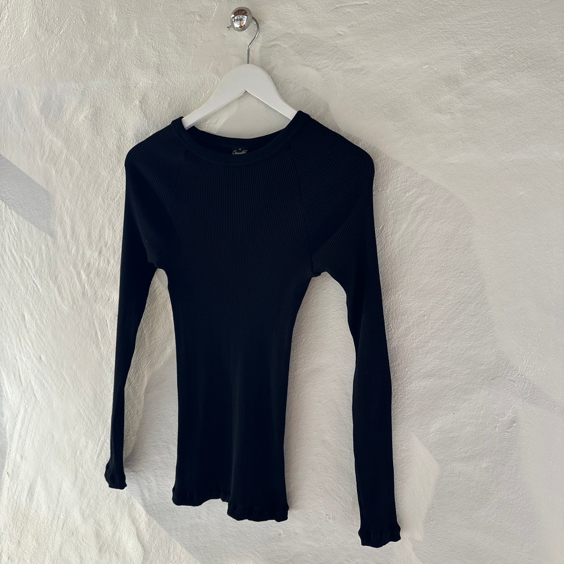 Bomuld Langærmet Rib Bluse, Sort 7161