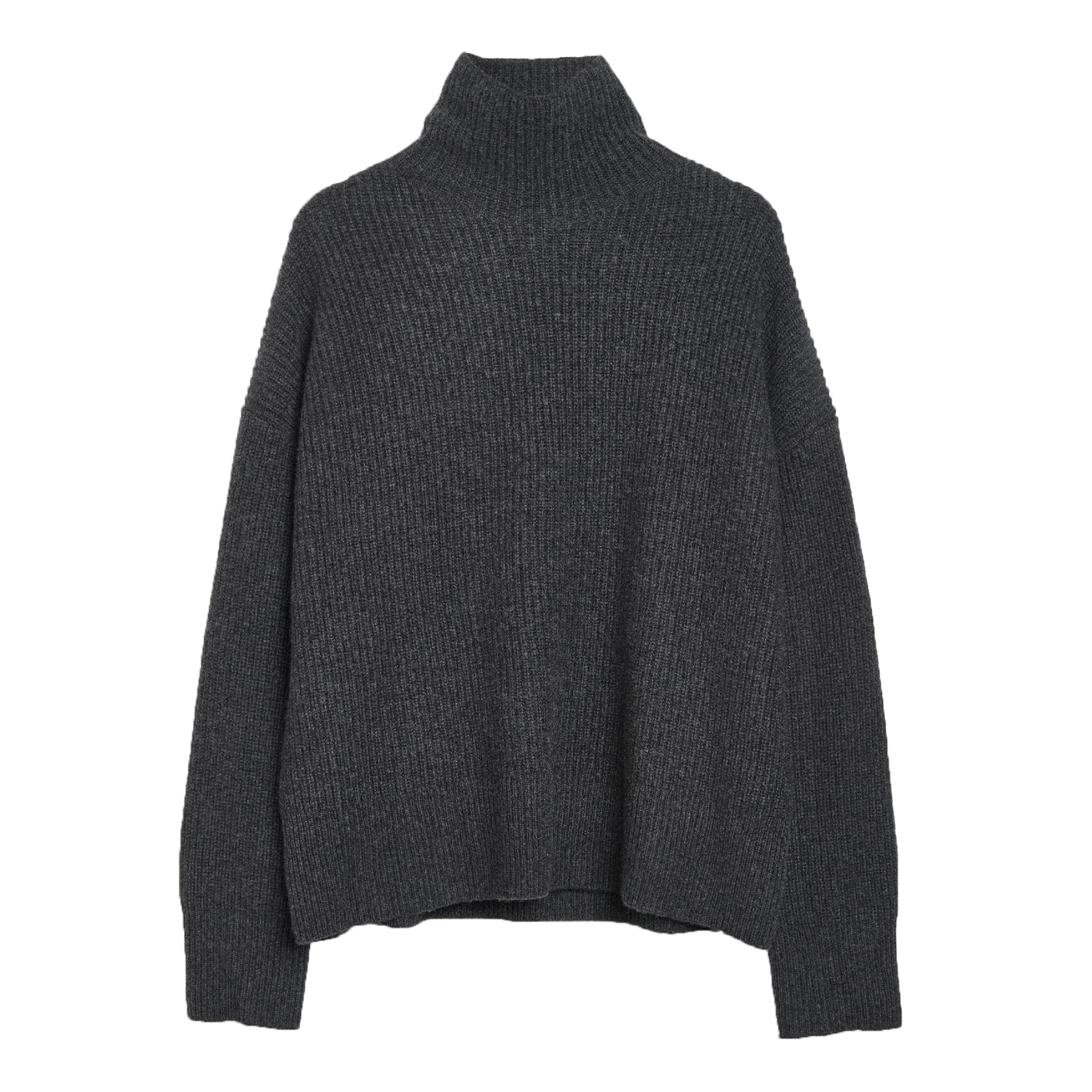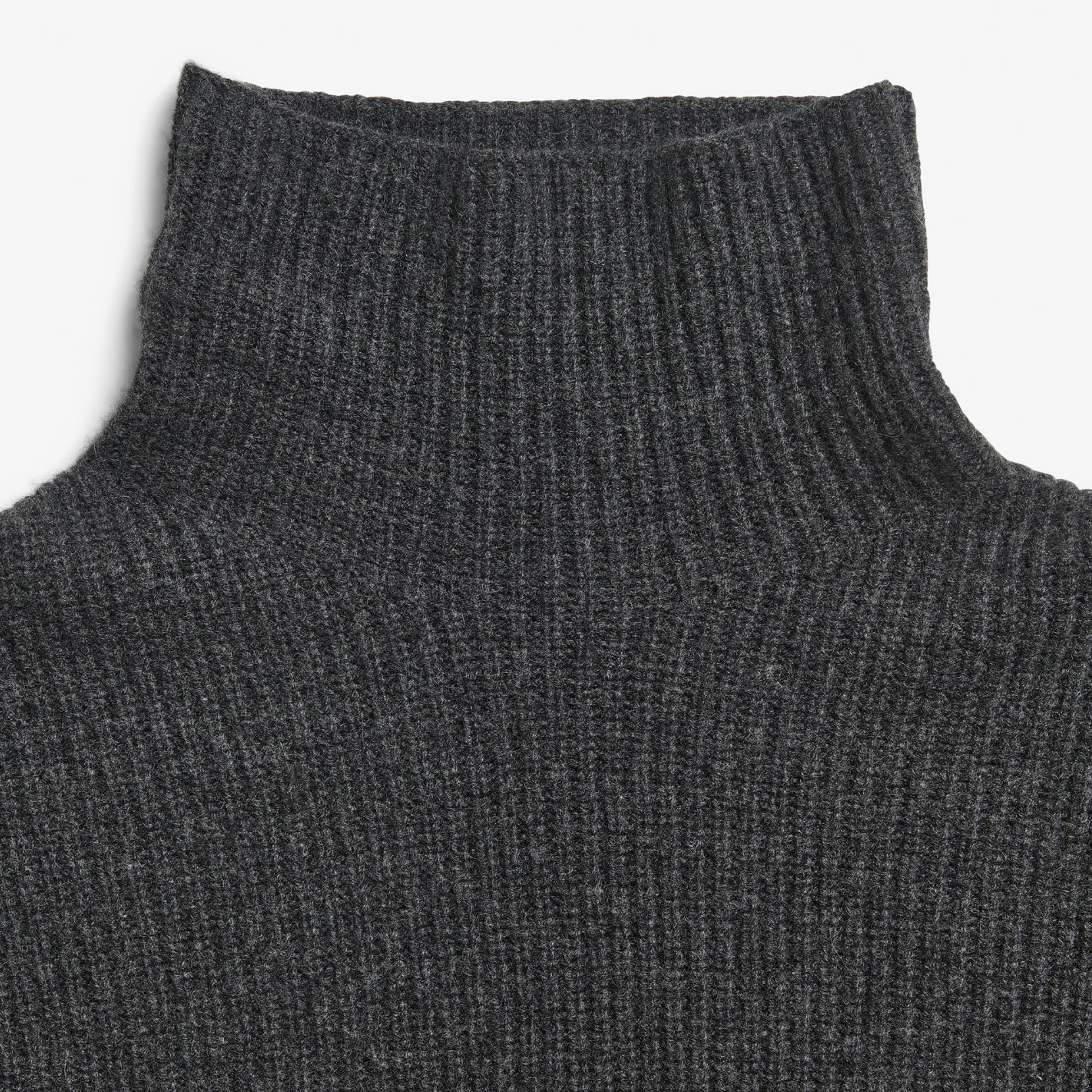 Premium Cashmere Ribbed Turtleneck, Dark Grey