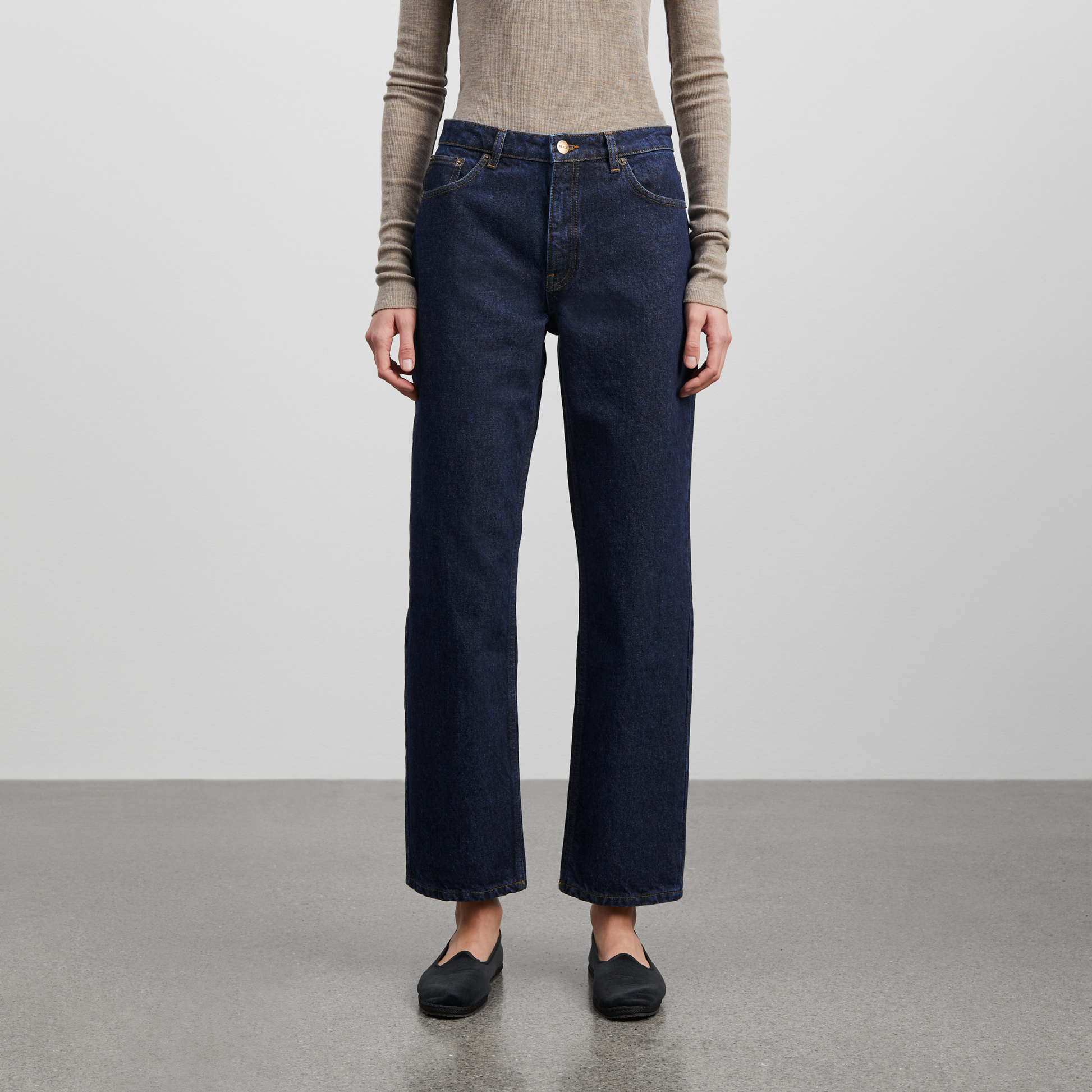 Allison Cropped Leg Jeans fra Skall Studio, i en smuk mørk blå vask. De smukke jeans er fremstillet i økologisk bomuld, og er en del af Skall Studios nye GOTS-certificerede denimlinje. De har et klassisk five pocket-udtryk samt bæltestropper. På linningen bagpå har de et broderet SKALL-logo.v