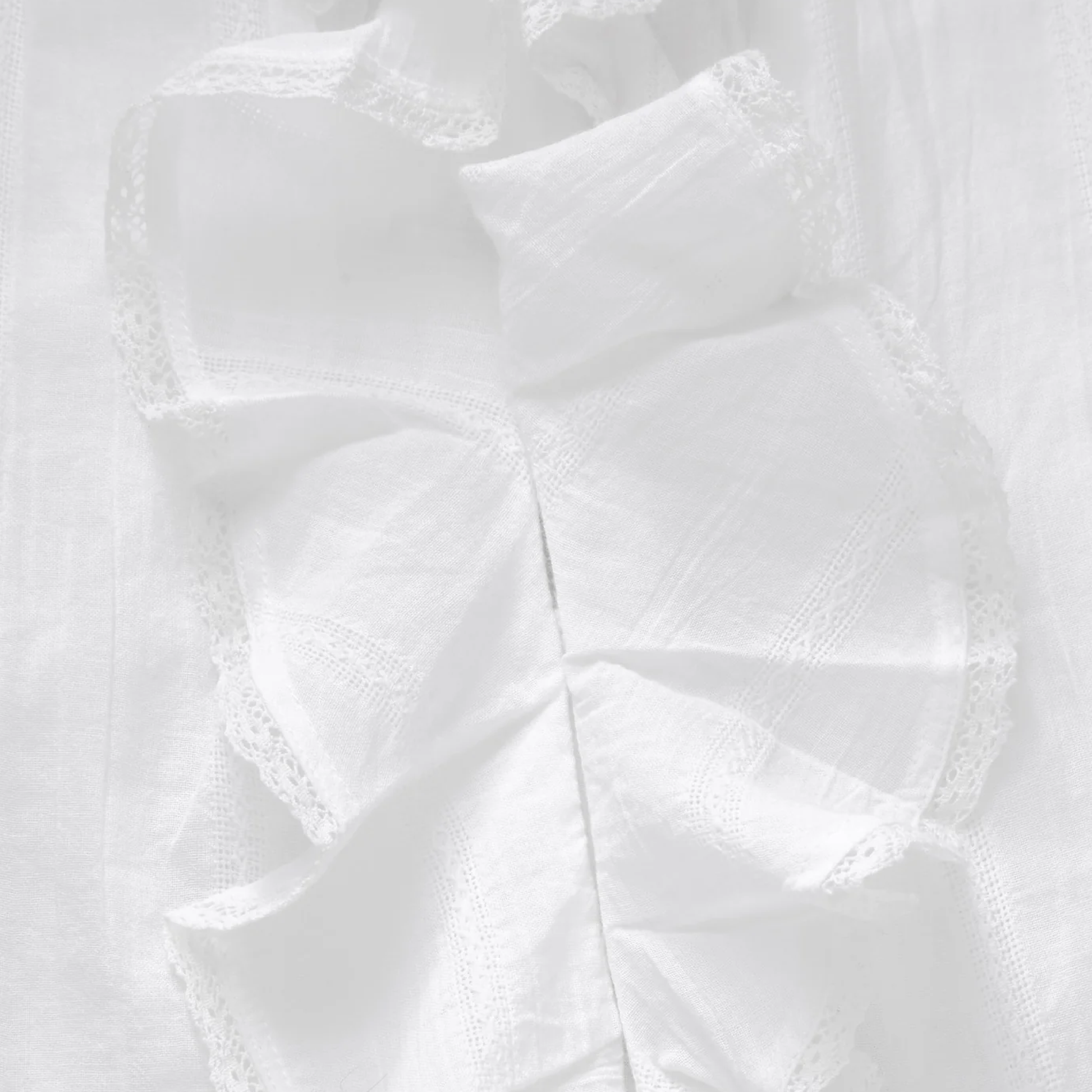Den fine Clea bluse fra Skall Studio. En sød bluse med V-hals og flæsedetaljer.