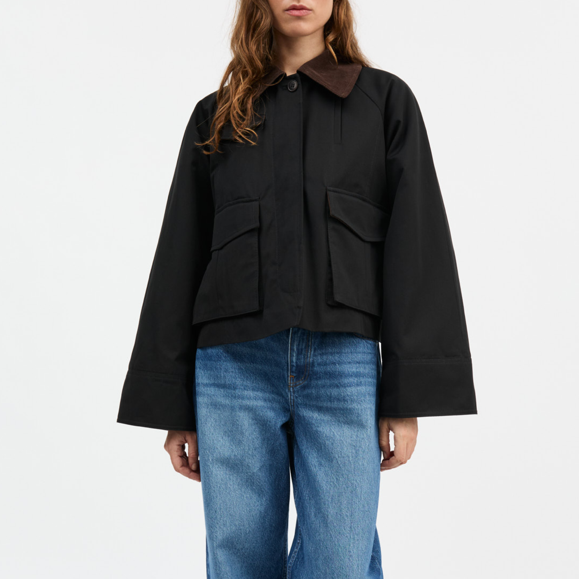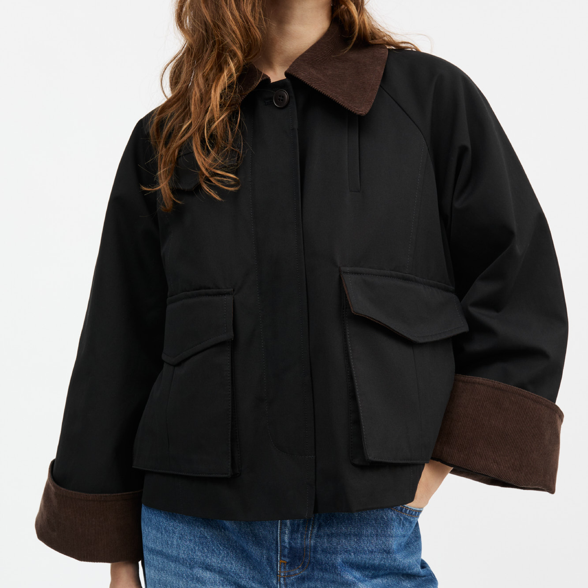 Den smukke Gaby City Jacket fra Skall Studio, i en luksuriøs og økologisk bomuldskvalitet med en vandskyende effekt.