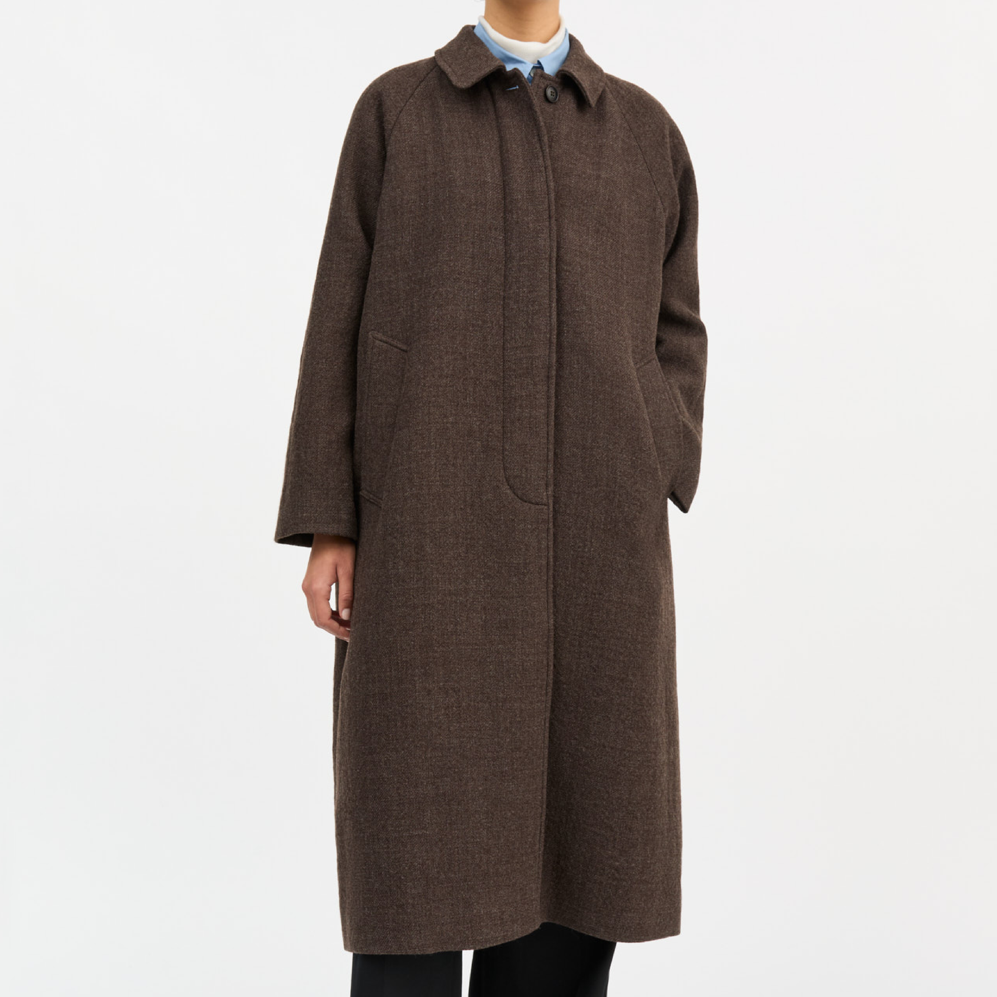 Mary coat, en Skall Studio-klassiker, er i denne udgave produceret i en eksklusiv uldkvalitet der gør sig godt både under skiftende sæsoner som på de koldere dage.