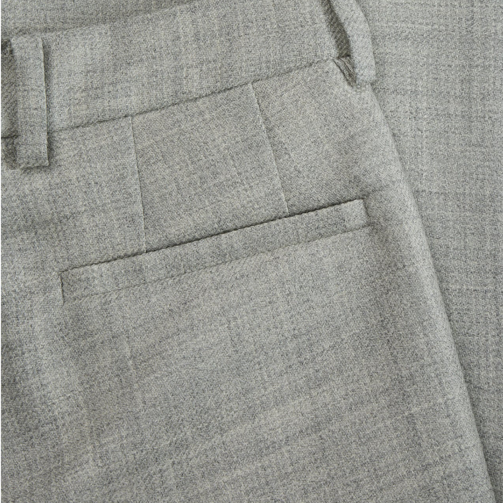 En klassisk, smuk buks fra Skall Studio, i en skøn uldkvalitet. Thom Trousers er løstsiddende, skræddersyede bukser. Designet i let 100% uld med et diskret nålestribet mønster. Bukserne har læg foran, bæltestropper og sidelommer. Bukserne har en lang længde.
