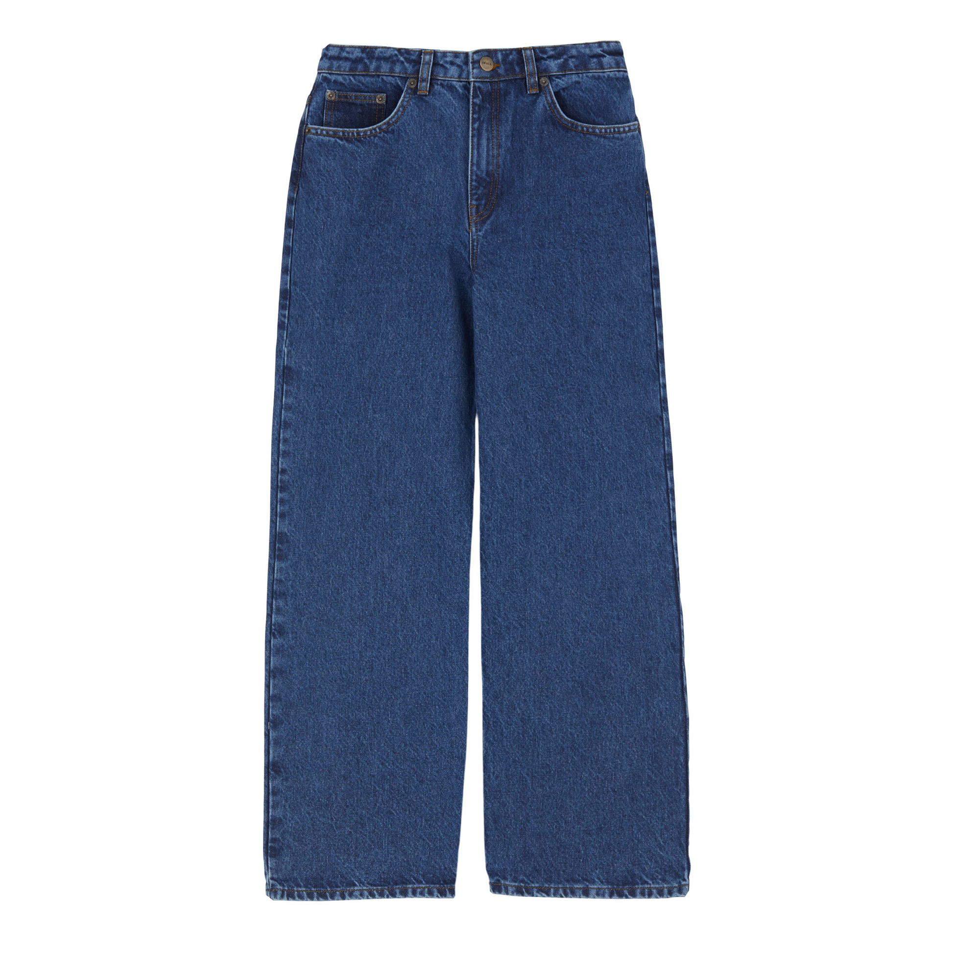 Willow Wide Leg Jeans fra Skall Studio, i en smuk blå vask. De smukke jeans er fremstillet i økologisk bomuld, og er en del af Skall Studios nye GOTS-certificerede denimlinje. De har et klassisk five pocket-udtryk samt bæltestropper. På linningen bagpå har de et broderet SKALL-logo.v