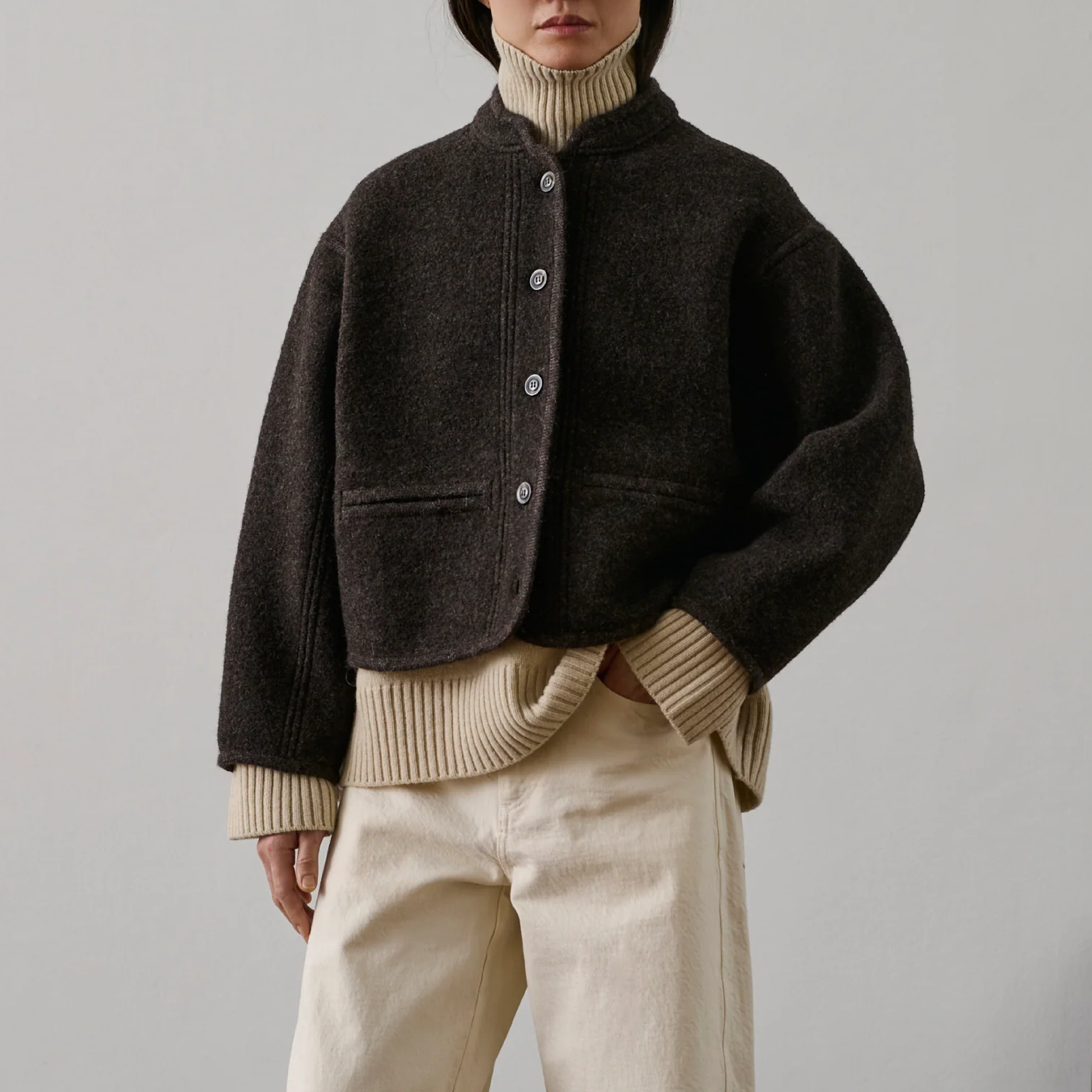 Smuk kort frakke fra det franske brand Soeur, i den skønneste uld kvalitet.