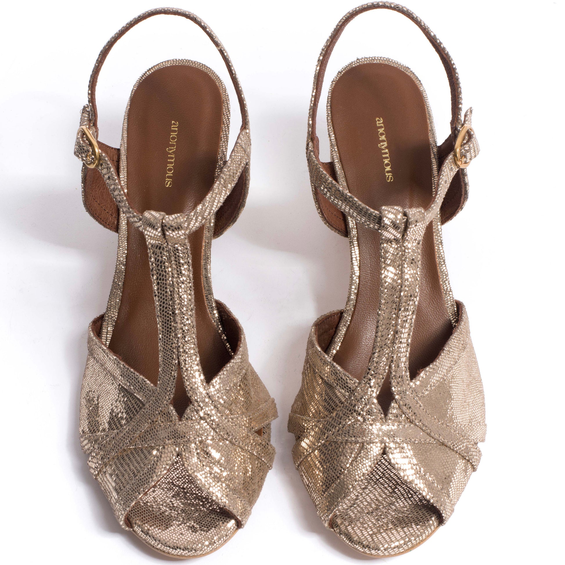 Therese 55 Stilet, Lizard Metallic Goat Champagne