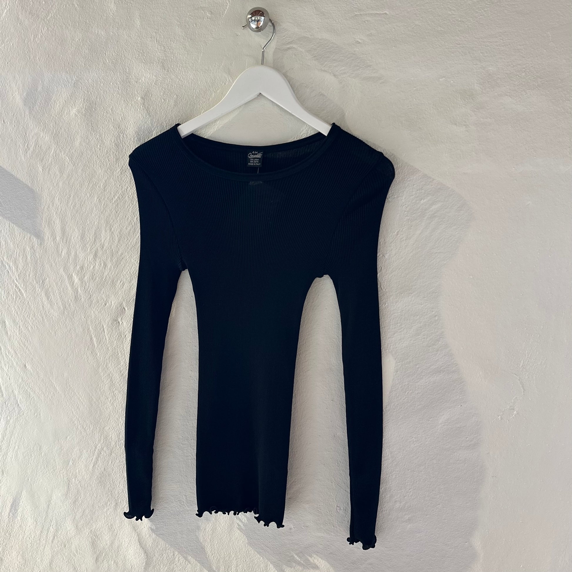 Uld & Silke Langærmet Rib Bluse, Sort 3446
