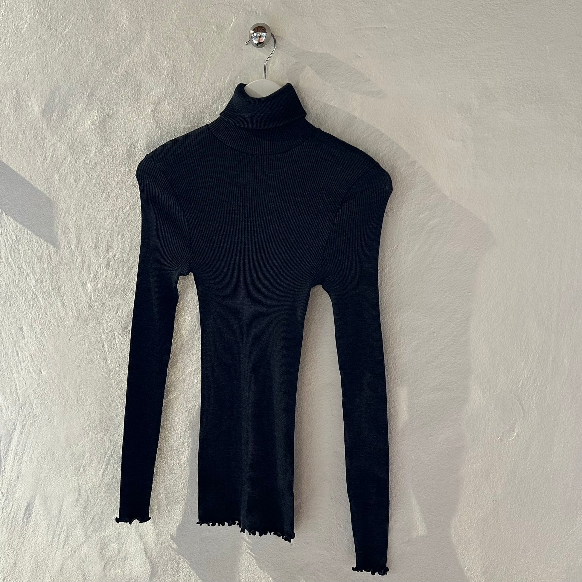 Uld & Silke Langærmet Rib Turtleneck Top, Grå 3438